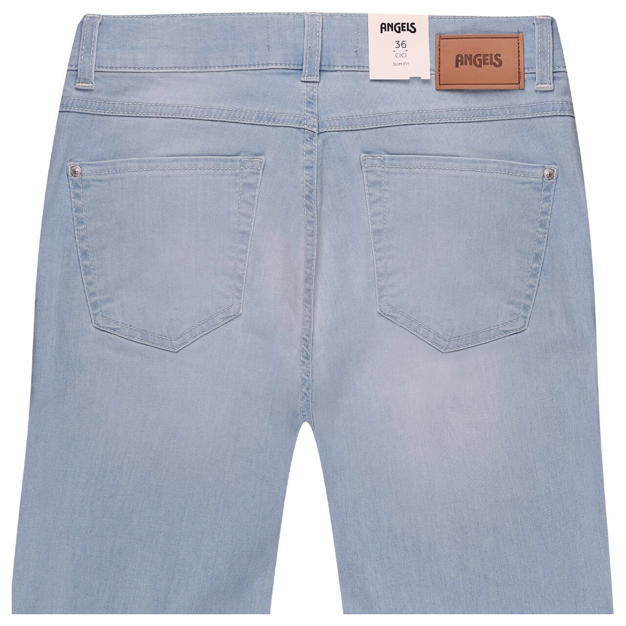 Mit ihrem geschlitzten Bein und der dezenten Bügelfalte sticht die Angels Cici Crop ins Auge. Den hellen, leichten Denim begleiten zartgraue Nähte und silberne Nieten, was die Damenjeans noch freundlicher wirken lässt.