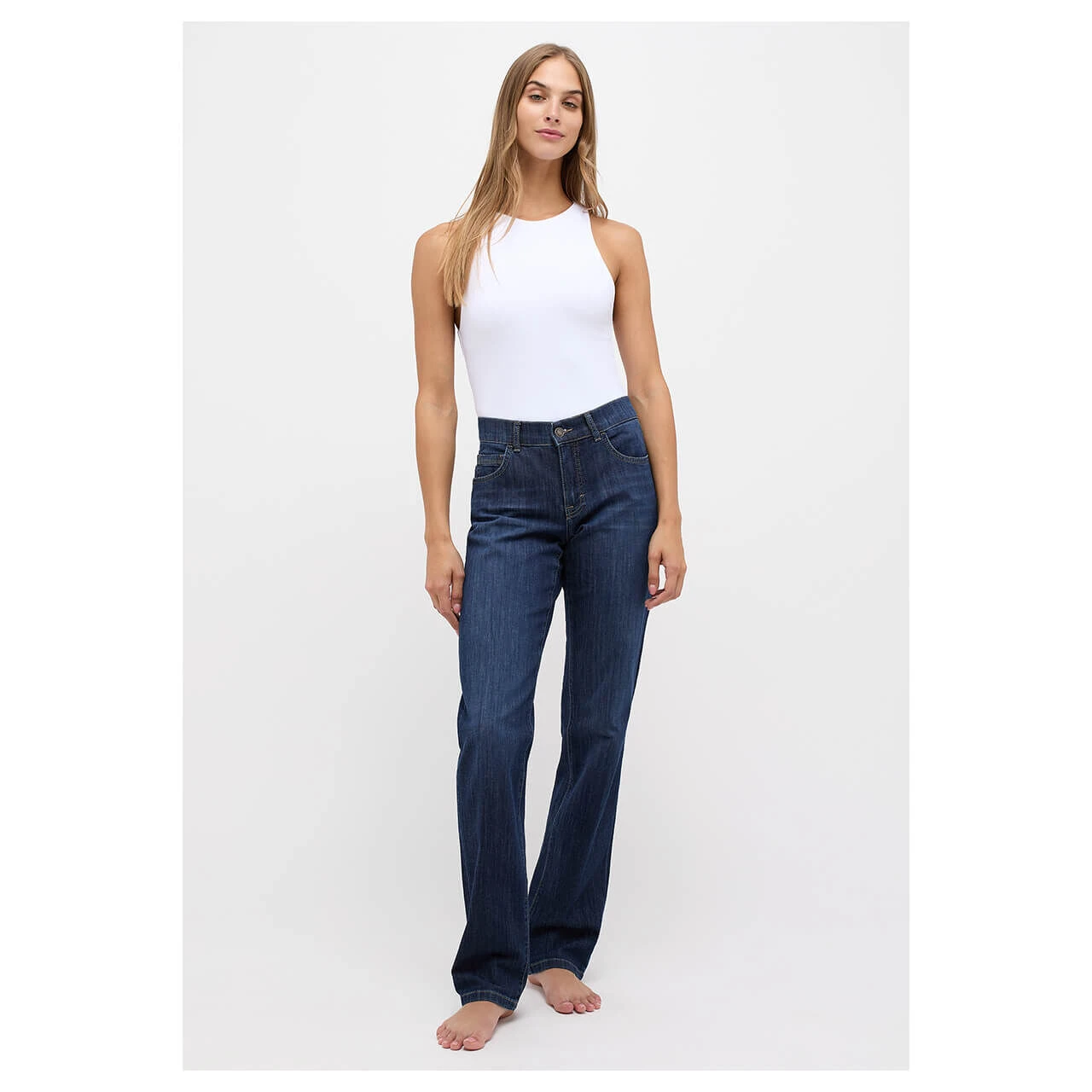 Die Angels Dolly ist aus einem angenehm leichten Jeansstoff, der einen hohen Tragekomfort garantiert. Die leicht streifige Waschung ist absolut gewollt und verleiht der Damenjeans einen authentischen Look.