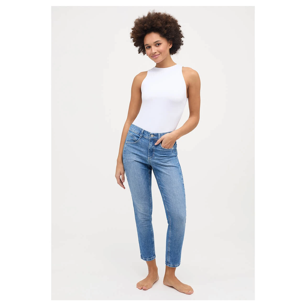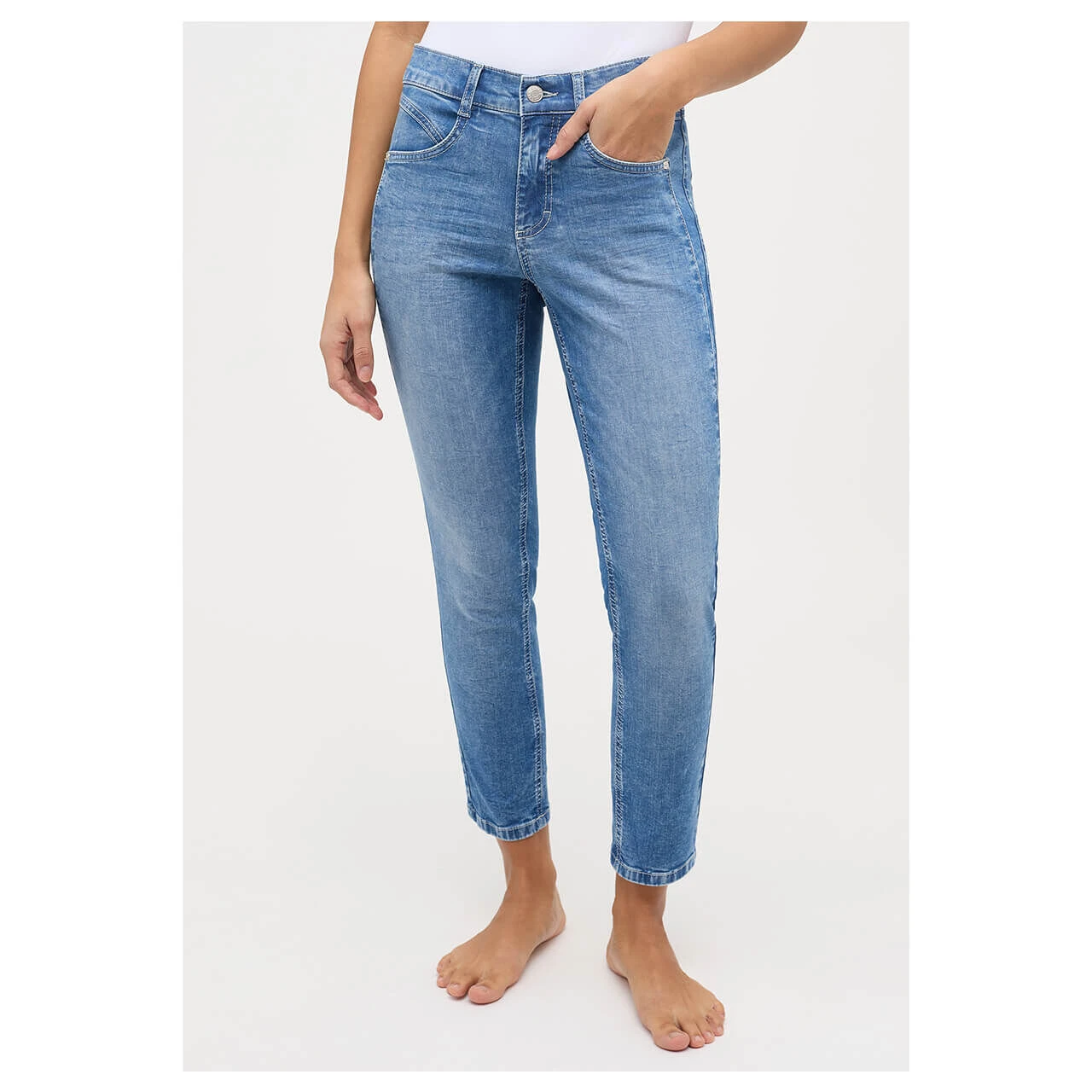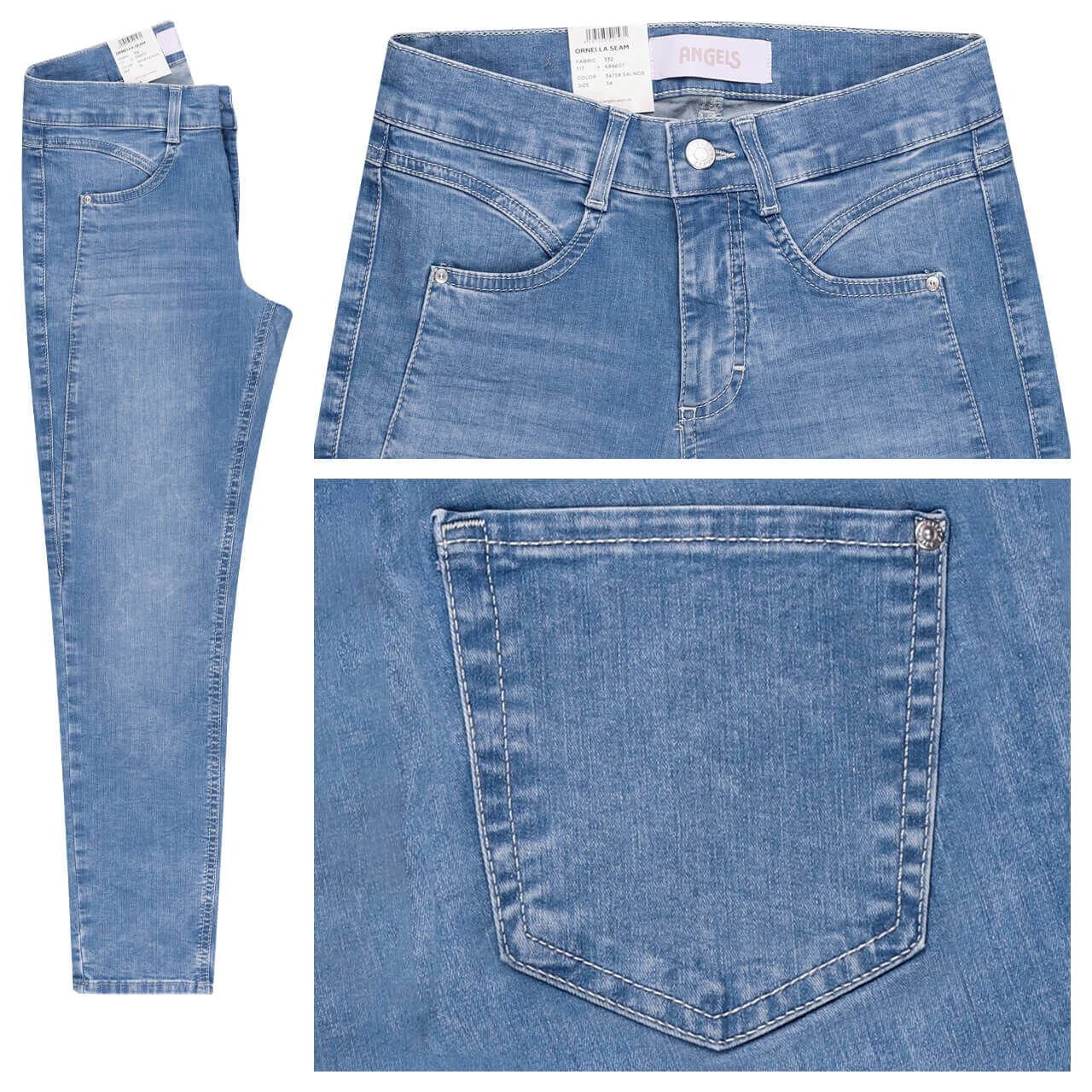 Die etwas nach innen versetzten Fronttaschen machen die Angels Ornella zu einem Hingucker! Zusätzliche Teilungsnähte verleihen der Damenjeans mit dem verkürzten Bein in 7/8-Länge eine sportive Note.
