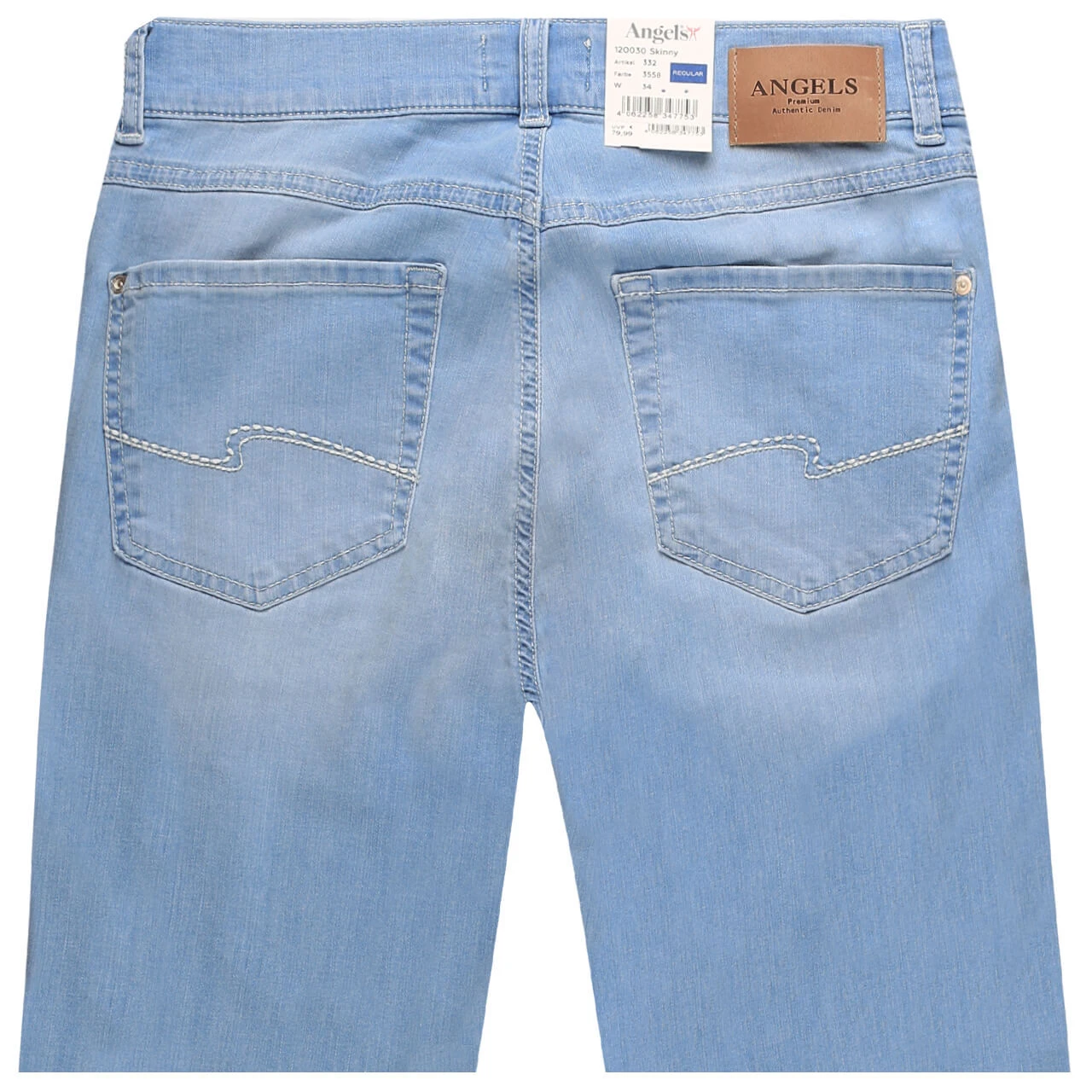 Mit ihrer sehr hellen Waschung hebt sich die Angels Skinny von anderen Damenjeans ab. Helle Nieten und Verzierungen auf den Gesäßtaschen betonen den frischen Look.