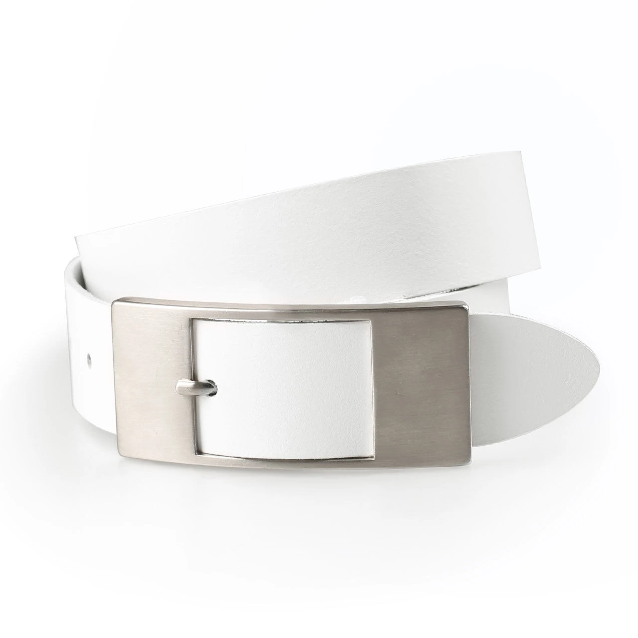 Passt zu jedem Look – der weiße Softledergürtel von Bernd Götz! Die rechteckige, silberne Schließe sieht besonders edel aus und erzeugt zusammen mit dem Echtleder einen hochwertigen Eindruck bei dem Damengürtel.