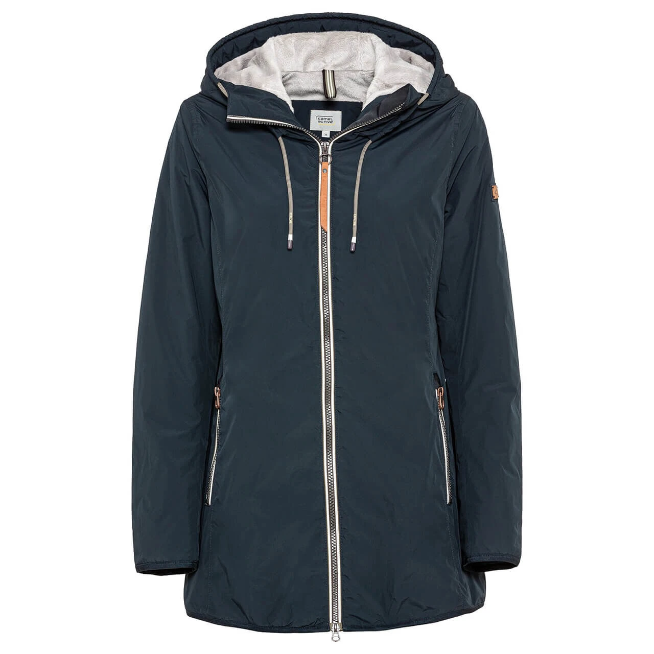 Dank des klassischen Farbtons lässt sich die Camel active Damenjacke vielseitig kombinieren. Zwei Außentaschen und der Zwei-Wege-Reißverschluss sorgen für eine hohe Funktionalität, während die Kapuze mit Tunnelzug Sie bei schlechtem Wetter trocken hält.
