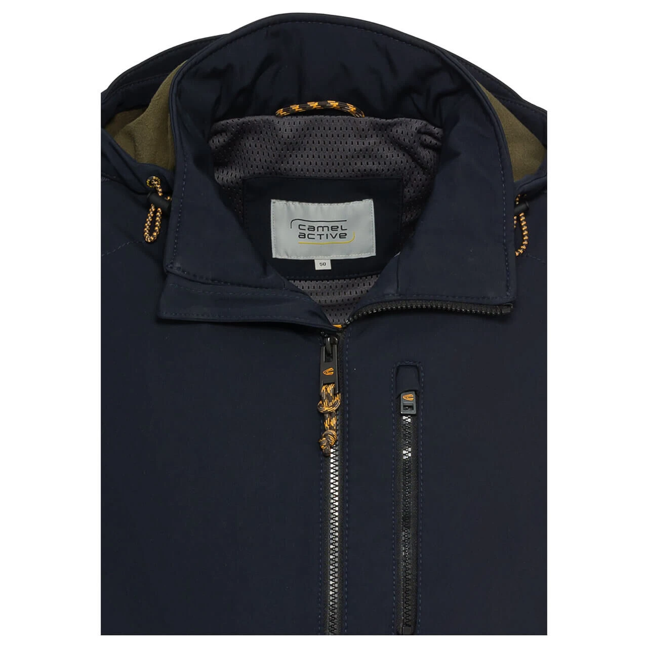 Für einen komfortablen und sicheren Sitz sorgt ein innenliegender Tunnelzug am Saum sowie die durch Klett verstellbaren Ärmel. Die Camel active Herrenjacke wird durch zwei verschließbare Taschen ergänzt.