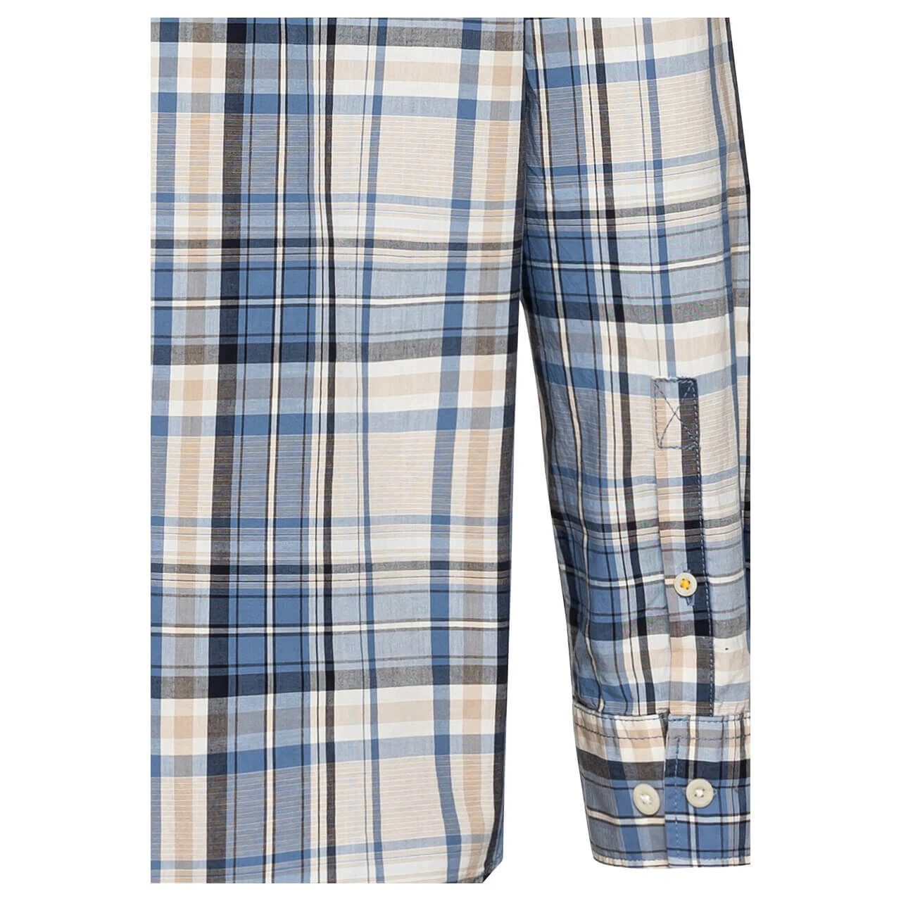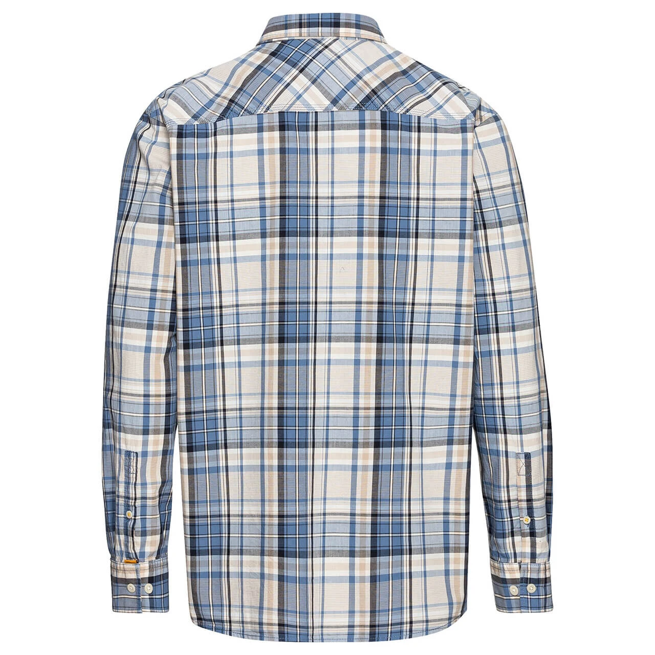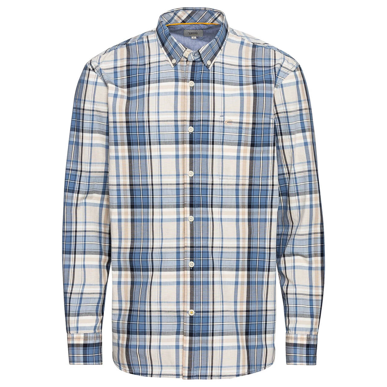 Das Camel active Herrenhemd besteht ausschließlich aus Baumwolle und hat einen angenehm weichen Griff. Das karierte Blau begleiten cremeweiße Knöpfe.