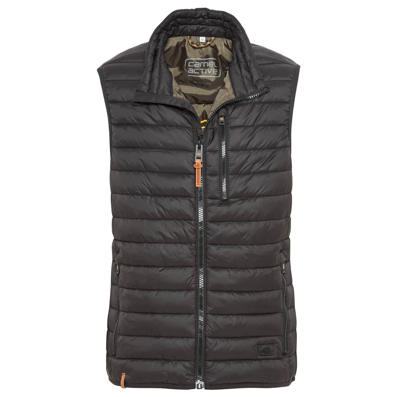 Ein Leichtgewicht auf Ihren Schultern ist diese Camel active Herrenweste. Mit ihrem dunklen Grau, das fast Schwarz ist, lässt sie sich easy kombinieren. Dank des Zwei-Wege-Reißverschlusses mit Kinnschutz und der Lederapplikationen ist die Steppweste für den Übergang funktional ausgestattet.