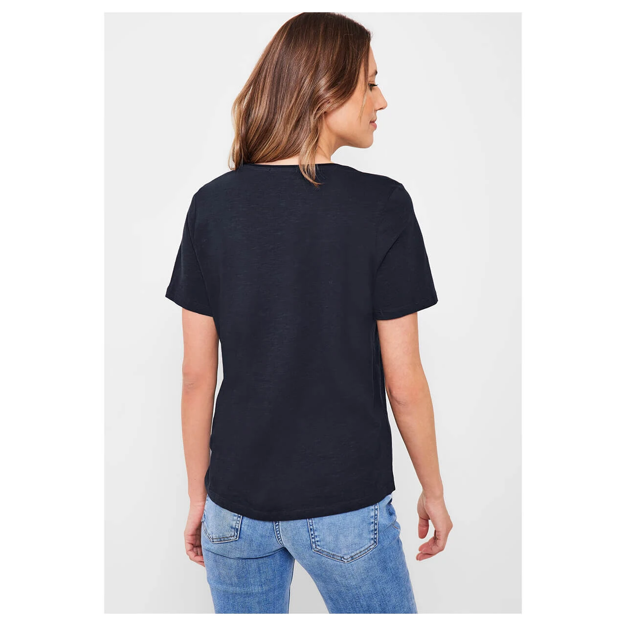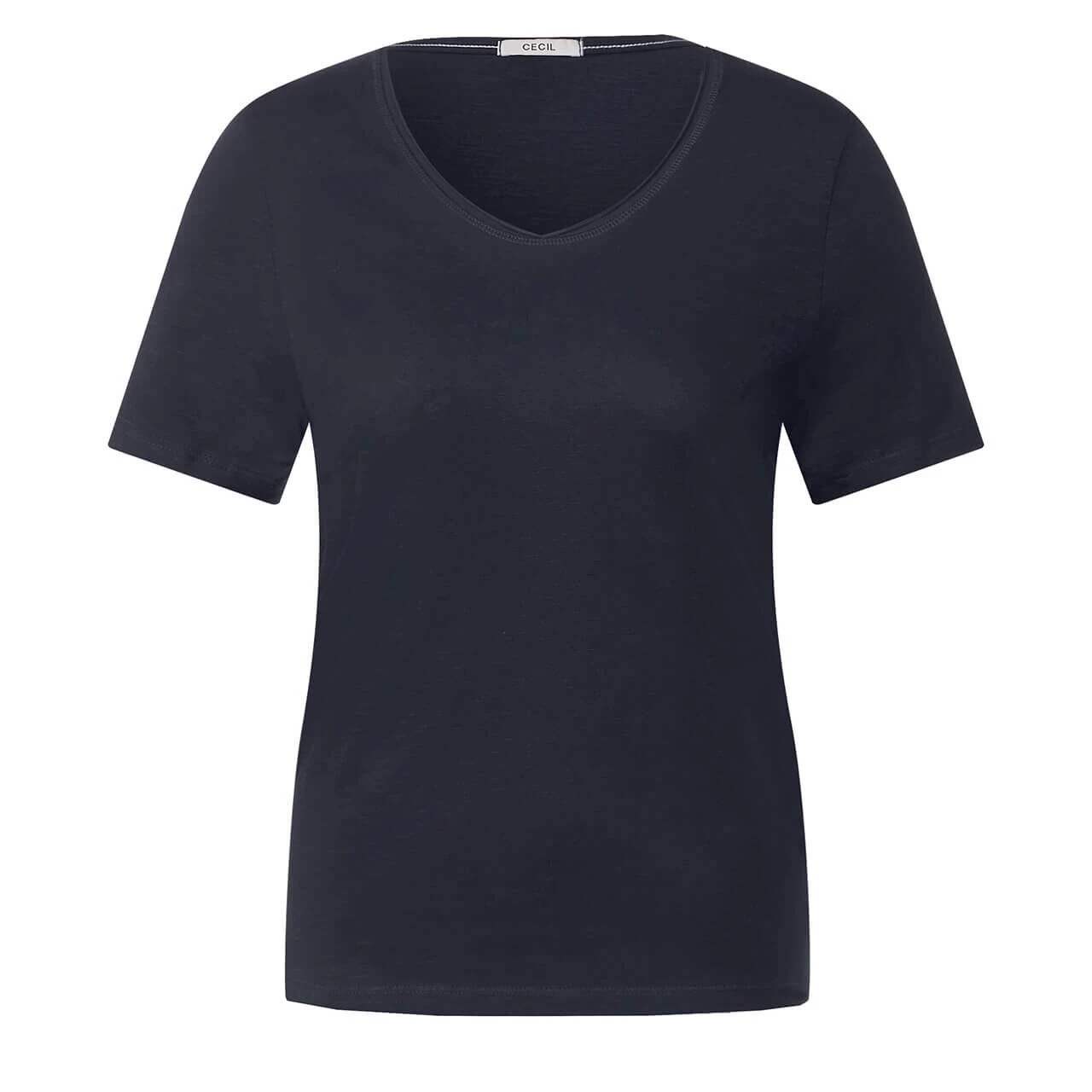 Damen T-Shirt Basic Rounded V-Neck in Dunkelblau