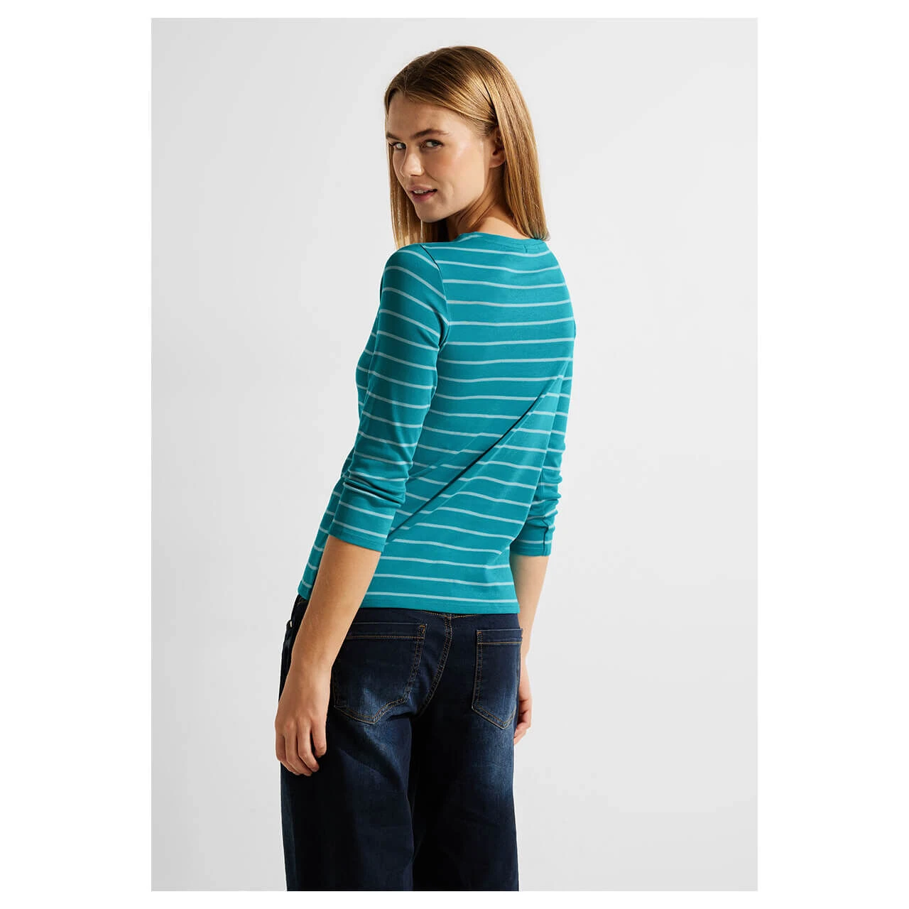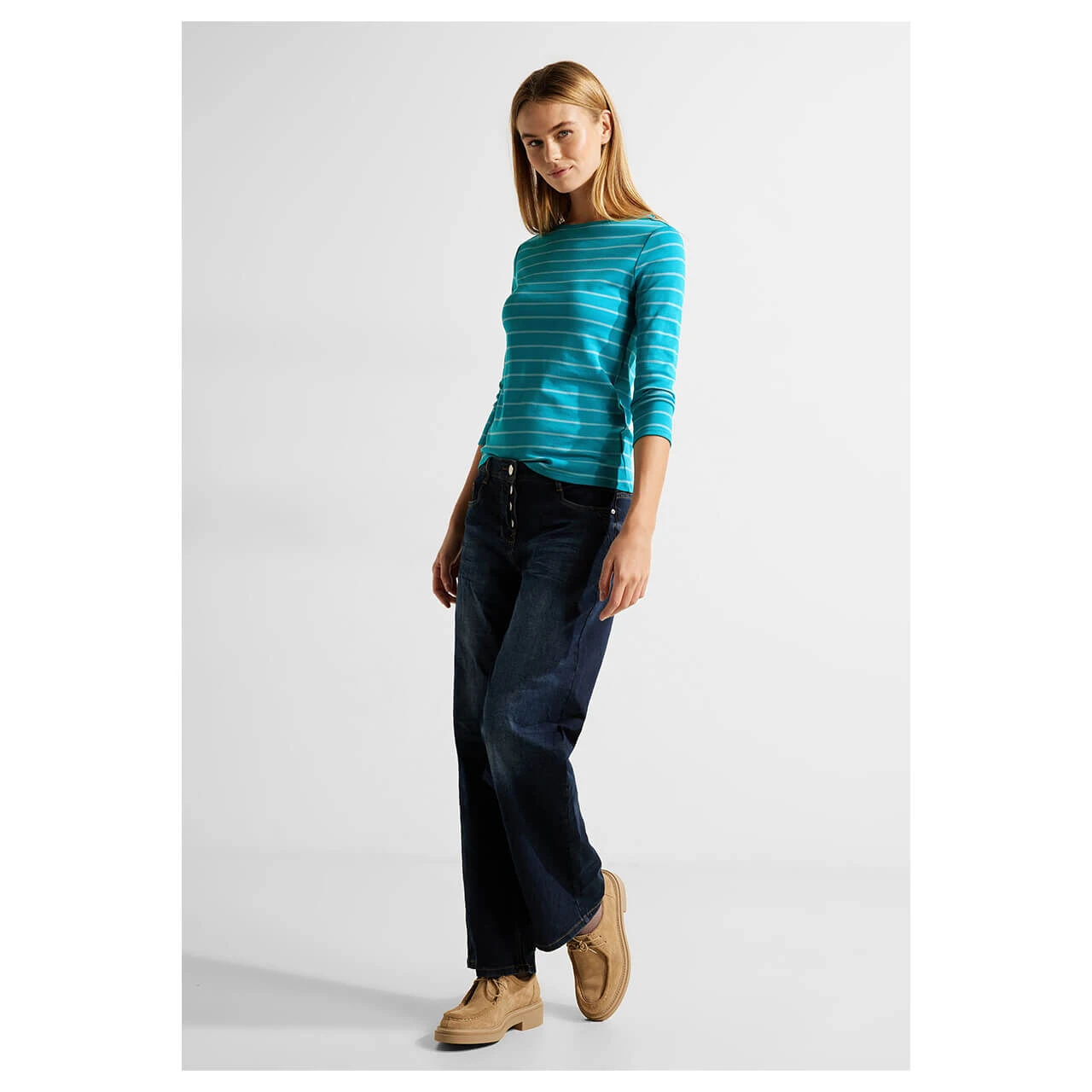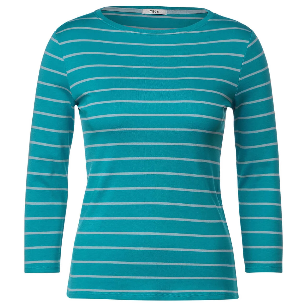 Damen 3/4 Arm Shirt Basic Boatneck in Türkis gestreift