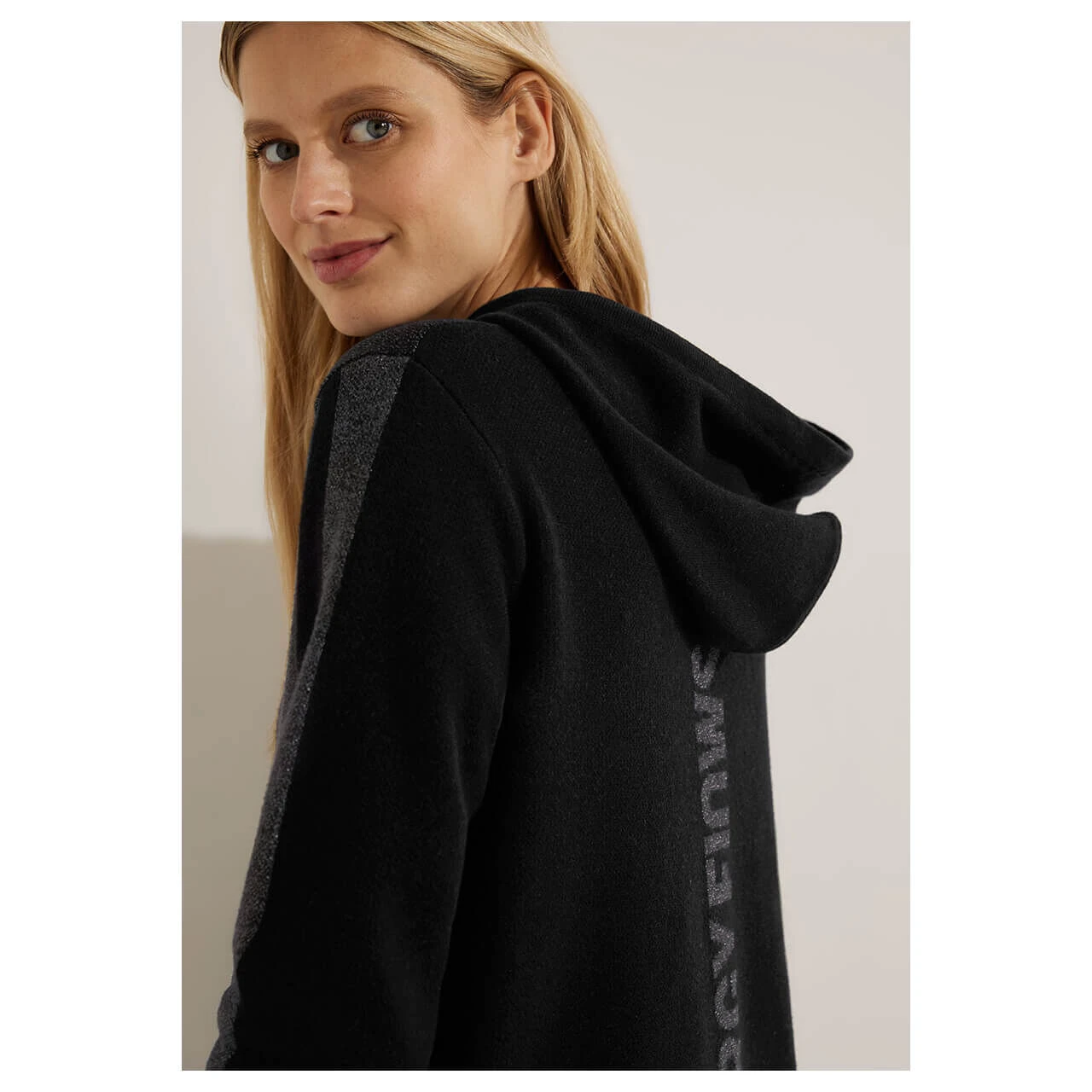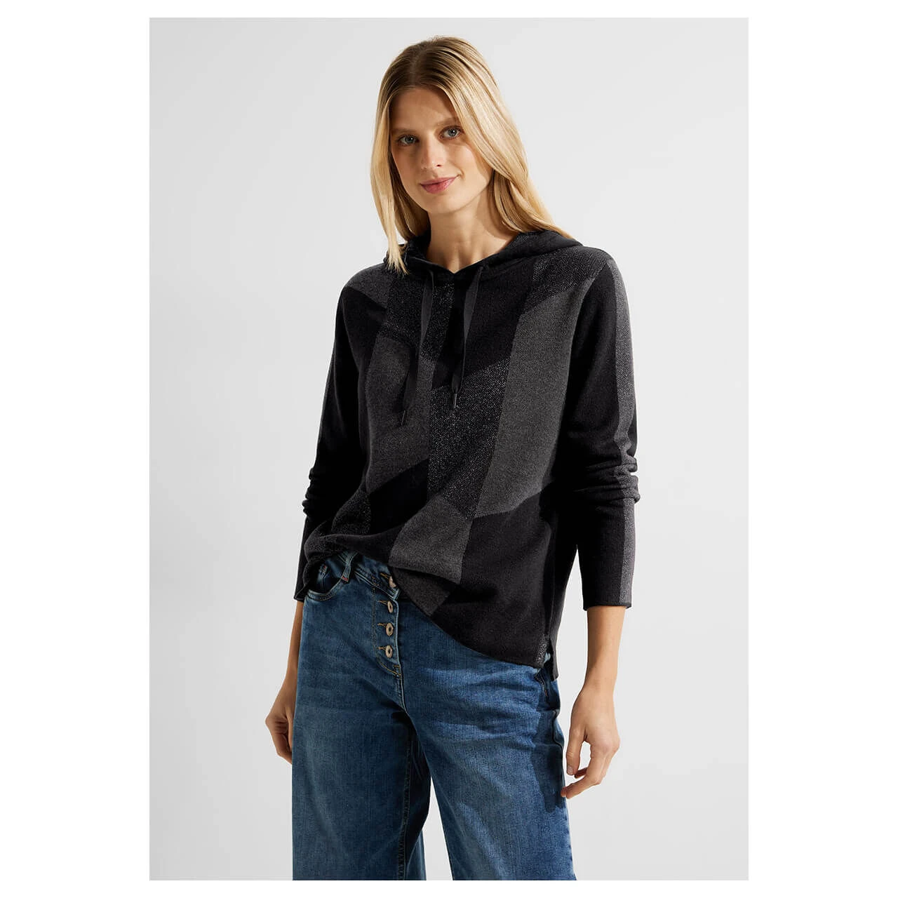 Glänzend und bequem! Der Damen Pullover von Cecil bietet eine Kapuze und geometrisches Muster mit Glitzer-Garn-Elementen. Das Oberteil mit Tunnelzugband garantiert höchsten Tragekomfort und ist ein Allrounder.
