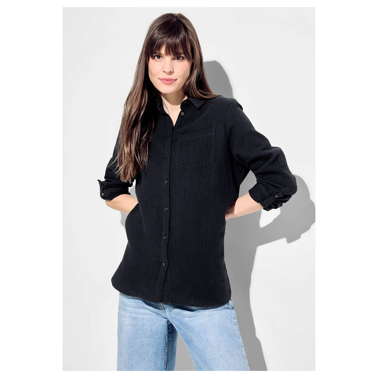 Die Musselin Damen Bluse von Cecil mit einer Turn-Up Langarm-Funktion ermöglicht es, die Ärmel nach Belieben hochzukrempeln. Das weich fließende und atmungsaktive Material sorgt für hohen Tragekomfort und macht diese Bluse zu einem vielseitigen Begleiter für verschiedene Anlässe.