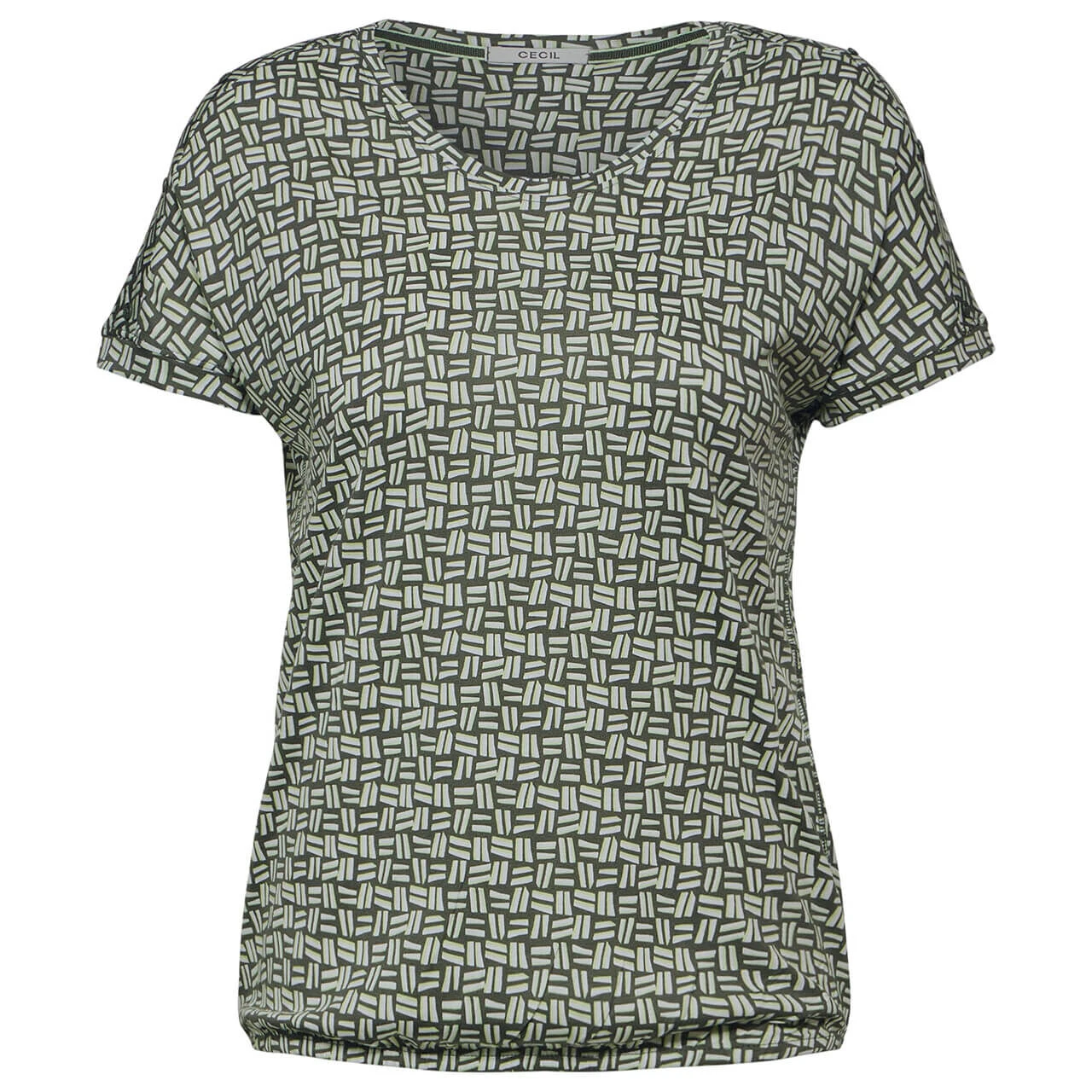 Das Damen T-Shirt von Cecil präsentiert sich mit einem trendigen Minimalprint und einem charmanten Knopfdetail an der Schulter. Dank des Gummibunds und der angenehmen Jersey-Qualität bietet es einen optimalen Tragekomfort für jeden Tag.