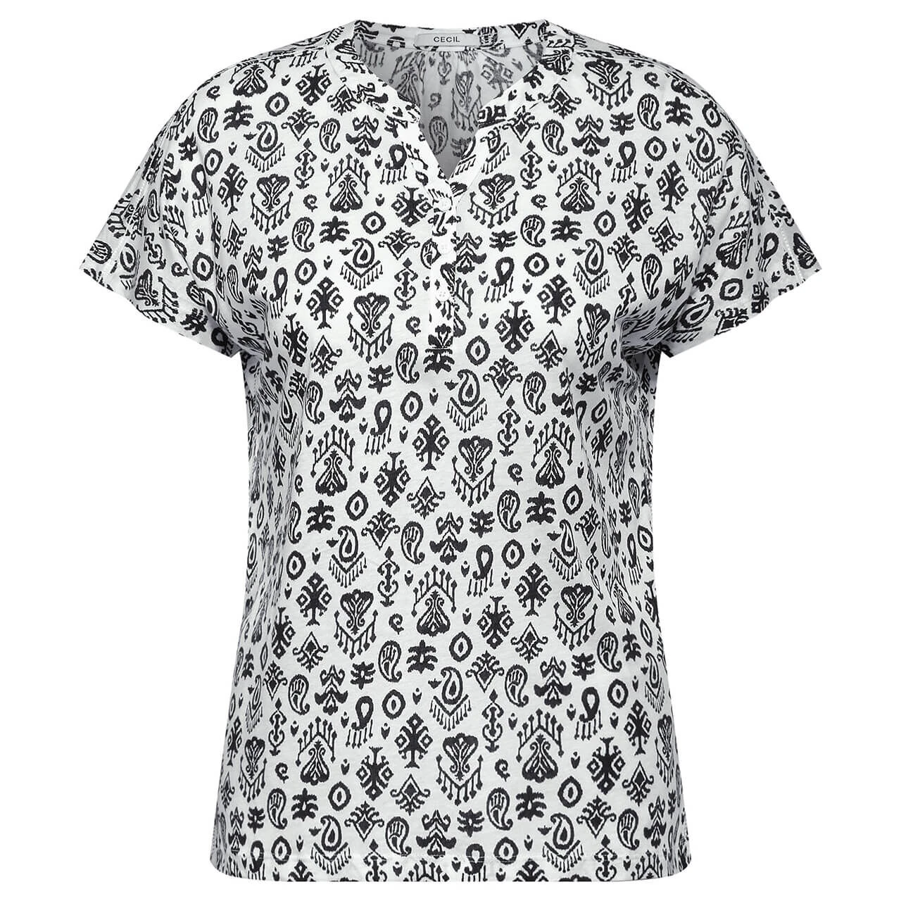 Schwarze Ornamente auf weißem Grund – Das Damen T-Shirt präsentiert dieses besondere Muster im zeitlosen Farbdesign. Dank der leichten Qualität ist Ihnen ein hoher Tragekomfort sicher.