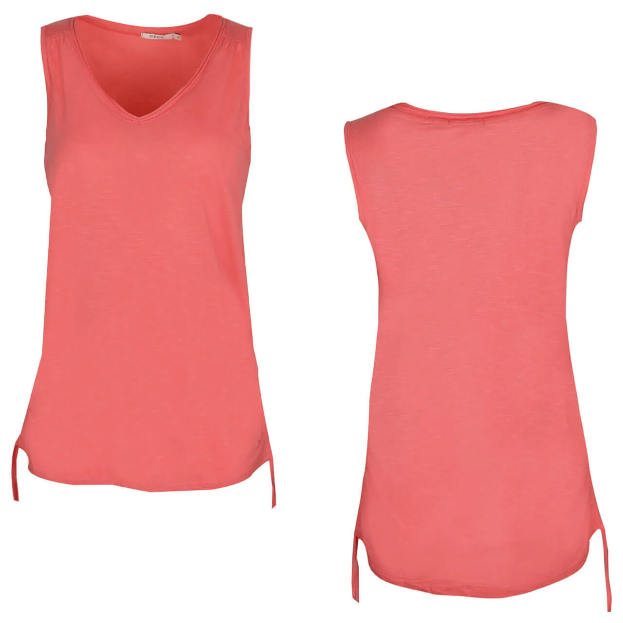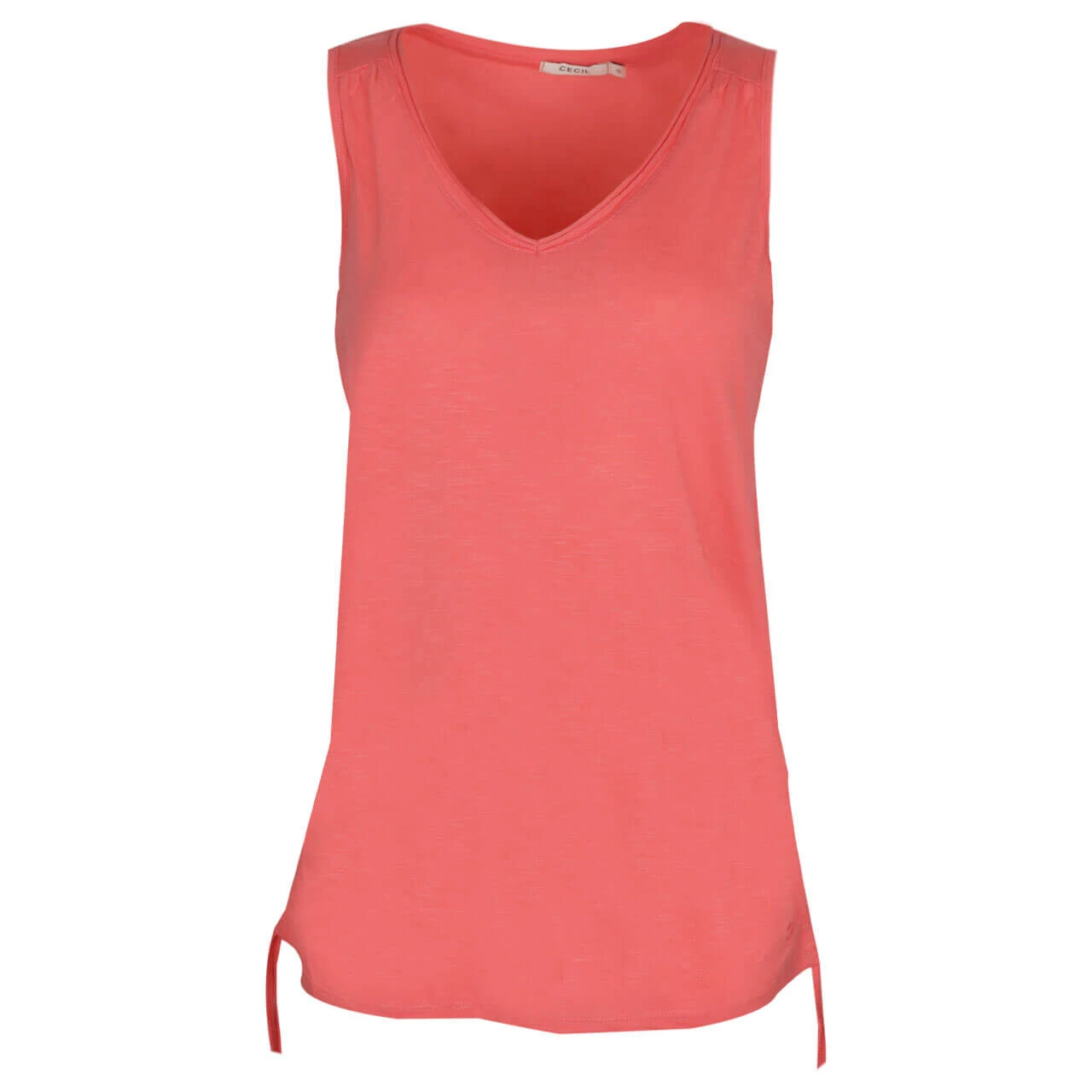 Feminine Raffungen zeichnen Cecil Klea und ihren Look aus. Das Top in einer hellen, fröhlichen Sommerfarbe können Sie an den Seiten selbst hochraffen und die Bänder entweder lässig herunterhängen lassen oder zu einer Schleife binden. Der V-Ausschnitt ist mit Rollkanten verziert. Ein luftiger Schnitt versüßt Ihnen heiße Tage! Wie wäre es zum Top mit einer gestreiften Damenjeans?
