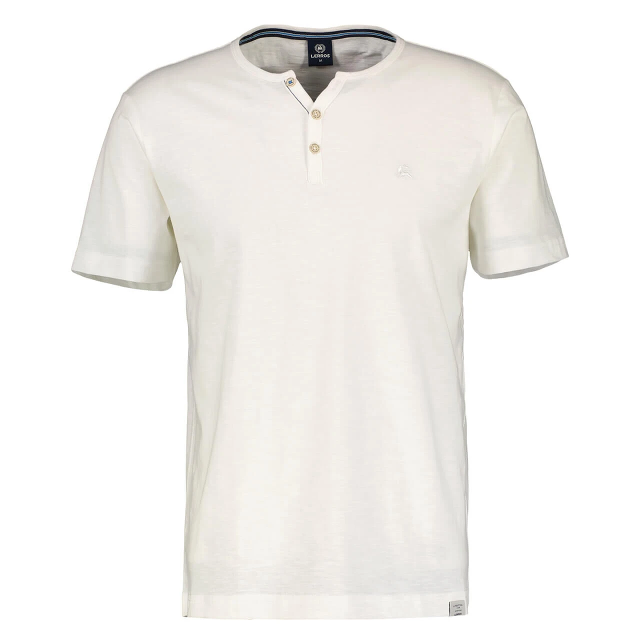 Das klassische Lerros Herren T-Shirt überzeugt Saison für Saison durch den zeitlosen Schnitt. Der Ausschnitt mit kurzer Knopfleiste und das gestickte Logo auf der Brust begleiten den Stil des Oberteils.
