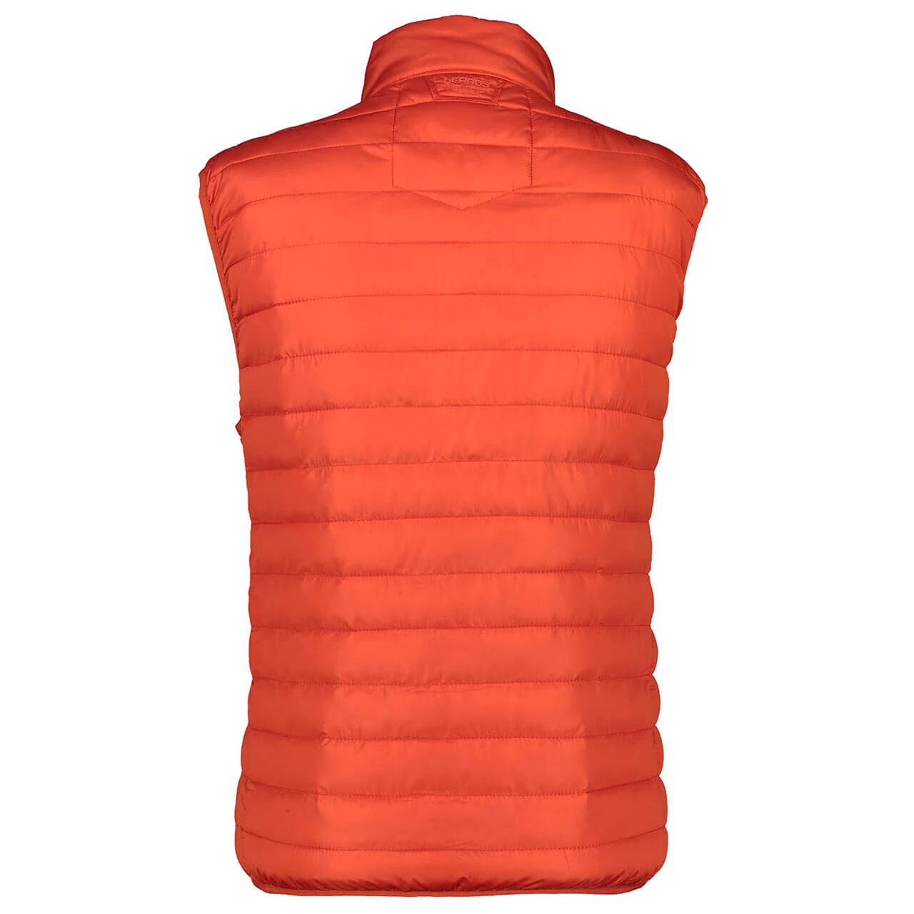 Die Lerros Weste überzeugt mit einem strahlenden Hellrot und dem typischen Markenlogo auf der linken Brust. Ein Stehkragen sowie zwei funktionale Eingrifftaschen runden den Look ab.