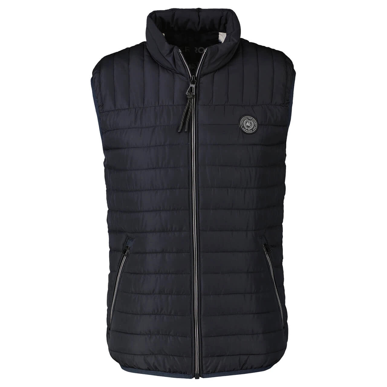 Mal horizontal, mal vertikal – die ärmellose Lerros Herrenjacke variiert bei ihrem Steppmuster und wirkt dadurch sportiv. Ein leichtes Eigengewicht und ein Markenpatch auf der Brust kennzeichnen die Weste für den Übergang.