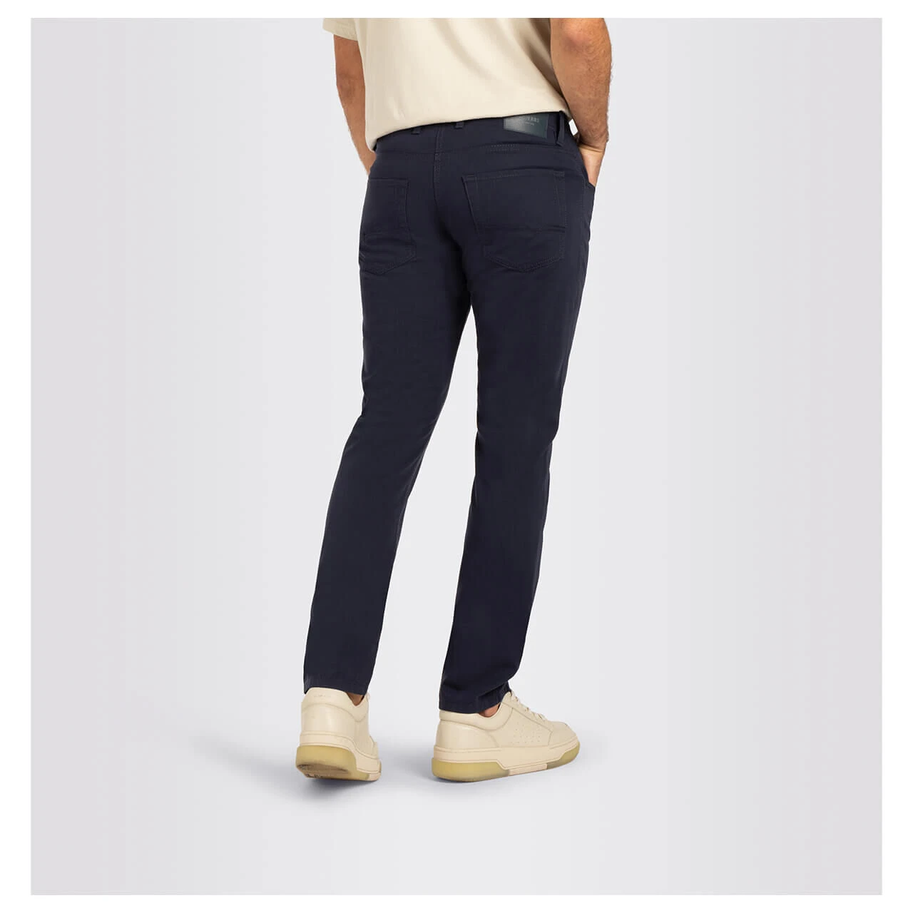 Mit ihrer Leichtigkeit und der markanten Struktur macht die MAC Arne von sich reden. Dank orangefarbener Details wirkt die Herrenhose sportlich – die elegante Seite geht aber dank der dunkelblauen Farbe keinesfalls unter.