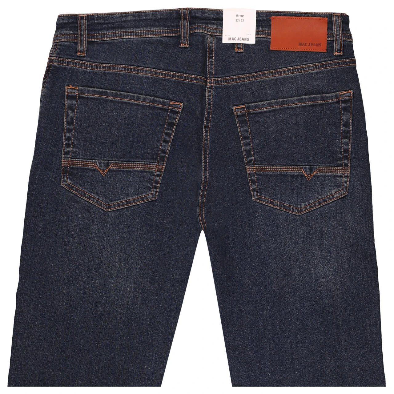 Einen klassisch-maskulinen Jeanslook garantiert Ihnen die MAC Arne. Ihr dezent rougher Style kommt durch den leichten Grünstich und die hellbraunen Nähte im Dunkelblau der Herrenjeans besonders gut zur Geltung. Der Stretchanteil verleiht dem festen Denim ein gutes Tragegefühl.