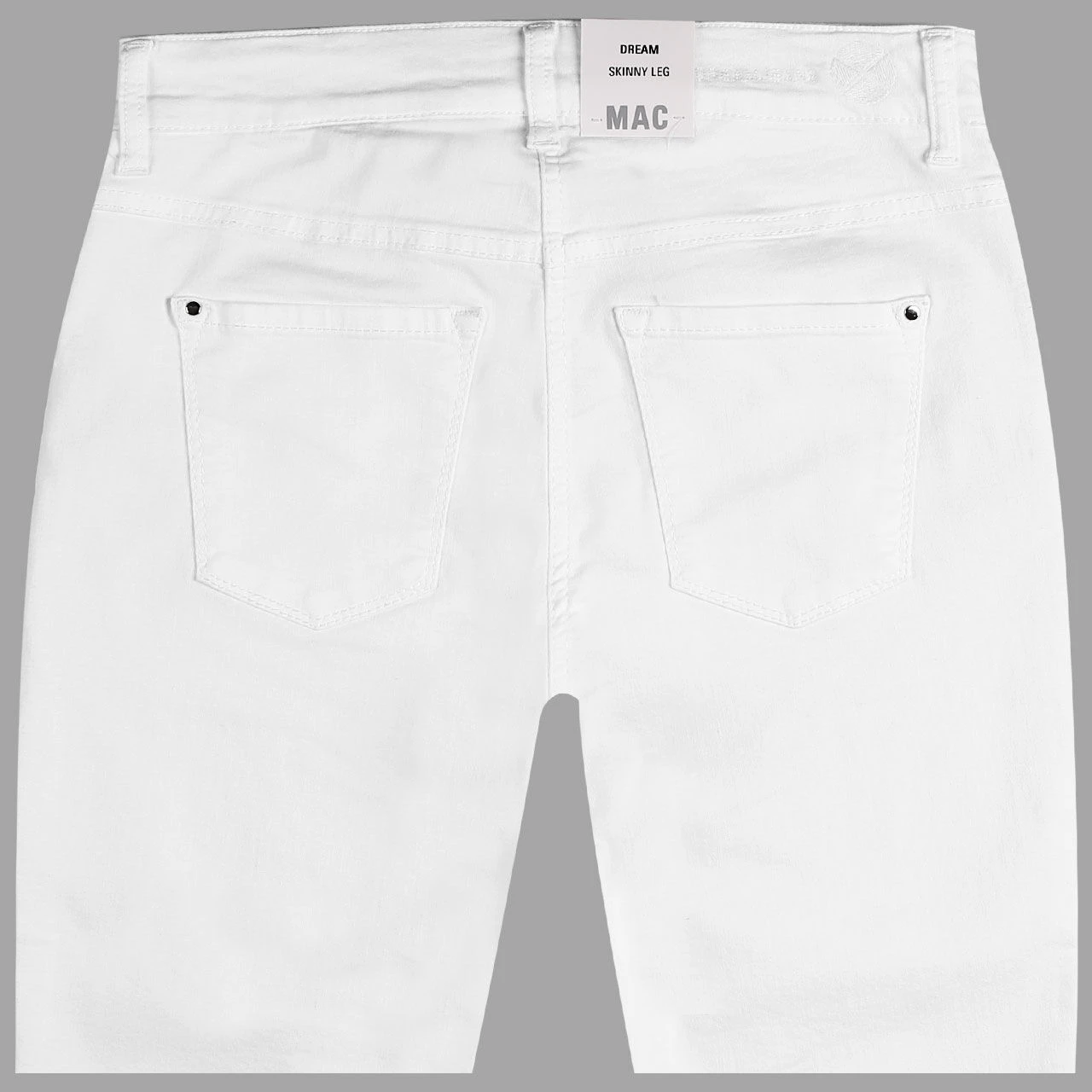 Form Dream Skinny ist die neueste Passform in der MAC-Produktpalette: Die Schwester-Passform ist im Vergleich zur MAC Dream noch ein wenig schmaler im Bein. Die Damenjeans verfügt über einen sehr hohen Stretchanteil und ist somit sehr elastisch. Sie passt deswegen bis zu zwei Konfektionsgrößen kleiner! Durch eine innovative Materialzusammensetzung passt sich diese Jeans der weiblichen Silhouette optimal an, bleibt aber trotzdem in ihrer Passform erhalten und leiert nicht aus. MAC Dream Skinny zeichnet sich außerdem durch ihren schönen weichen Griff aus. Das frische Weiß der Damenjeans passt perfekt zu jedem Outfit – auch im Job!