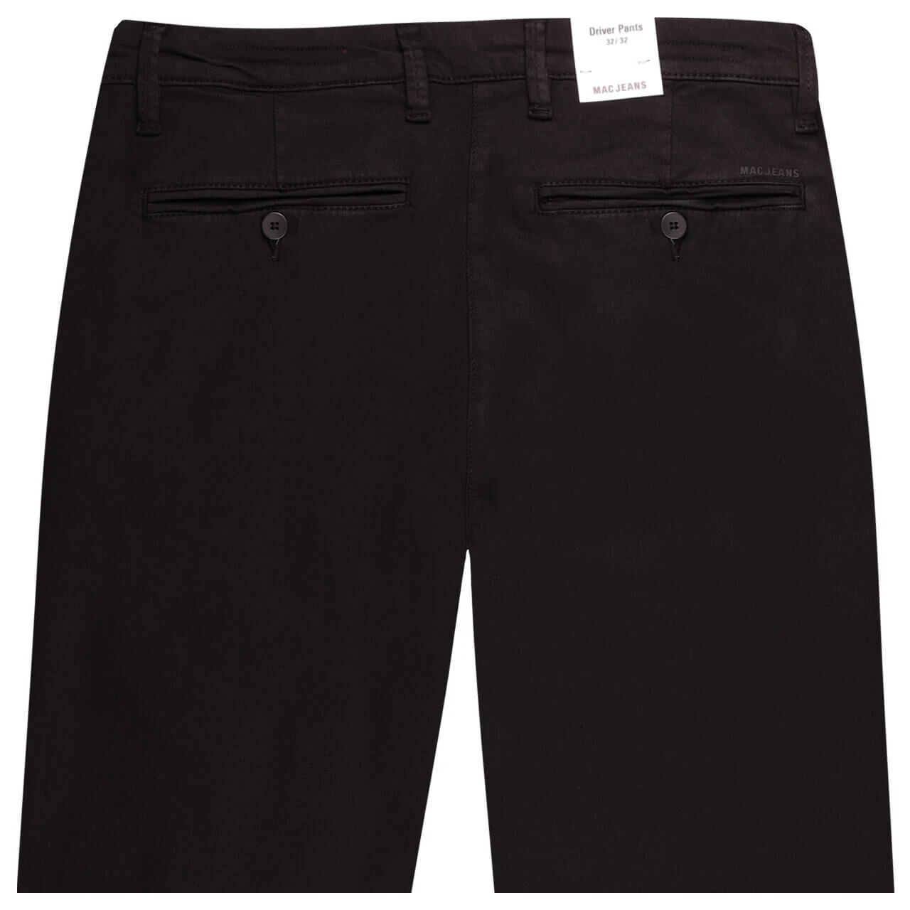 Bereit für ausgedehnte Touren: Die MAC Flexx ist ideal für viele oder lange Autofahrten und gilt bei der Marke deswegen als Driver Pants. Durch die Elemente einer Chinohose – die schrägen Fronttaschen und die besonderen Gesäßtaschen – und die schwarze Färbung hat die Herrenjeans eine elegante Wirkung.