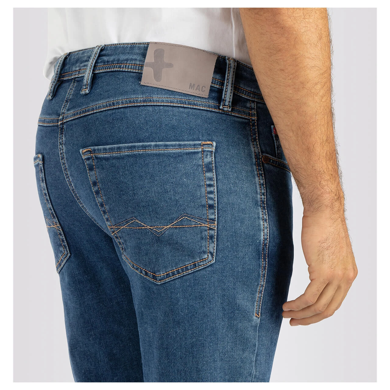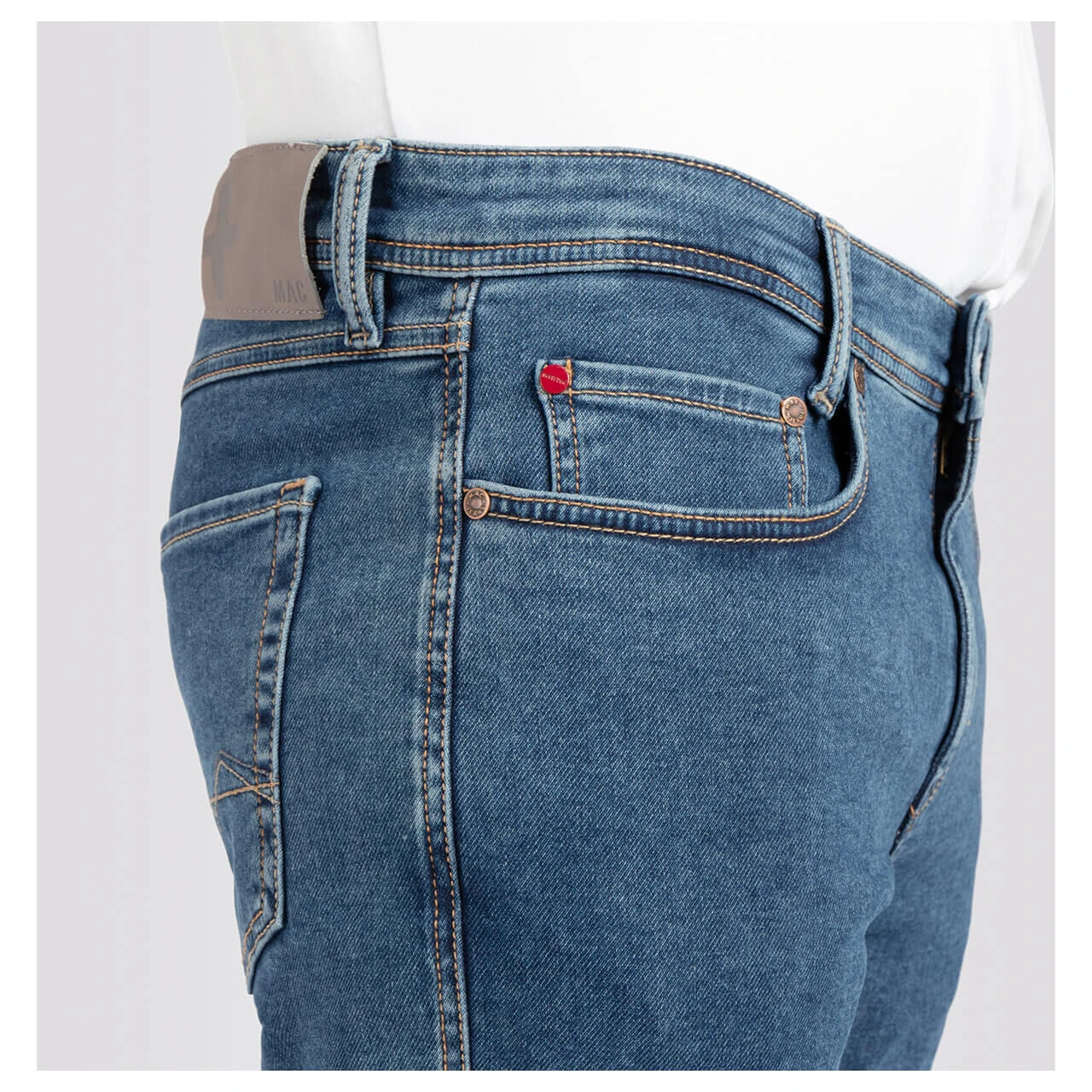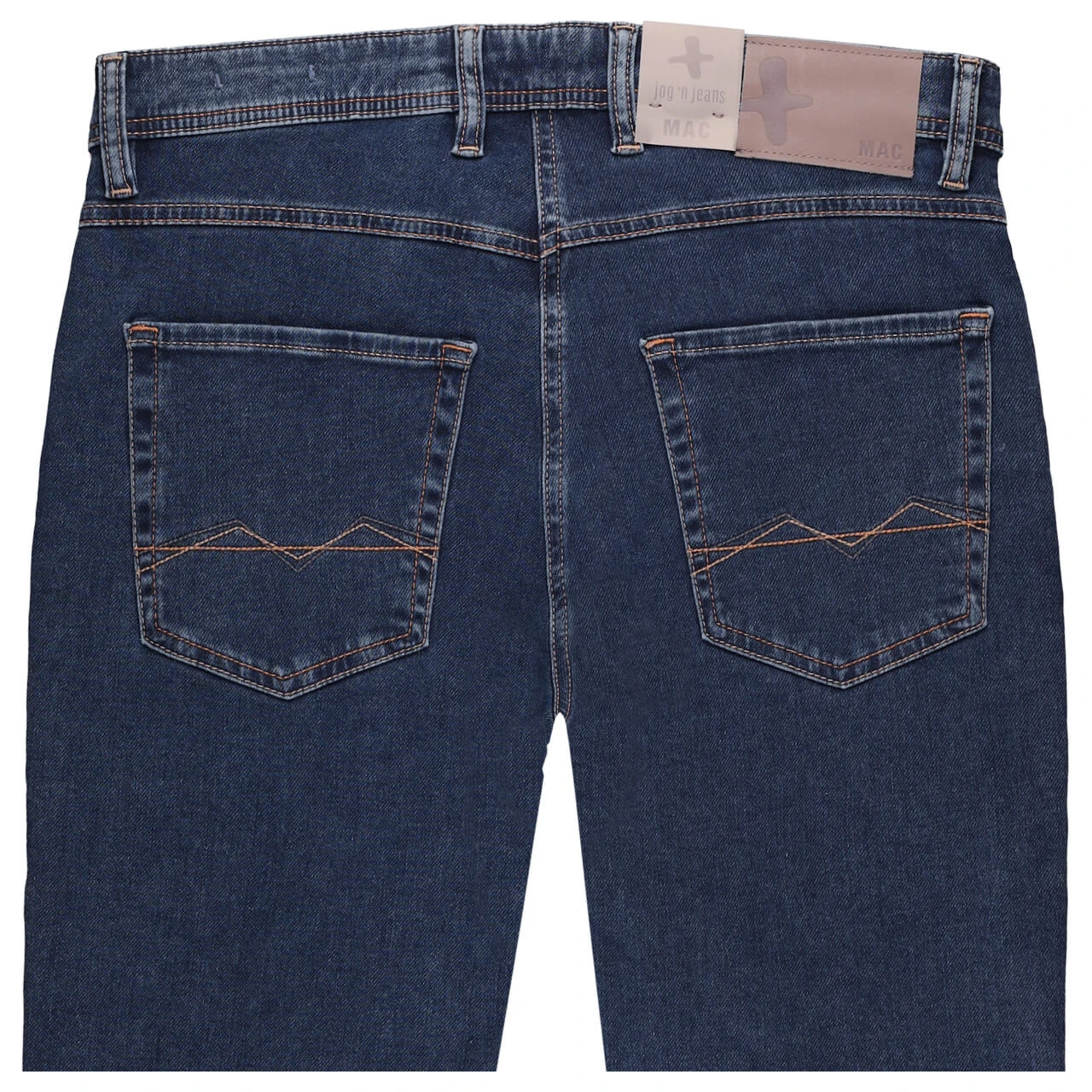 Reinschlüpfen, wohlfühlen, gut aussehen! Alles möglich mit der MAC Jogn Jeans! Das hochwertige und flexible Stretchmaterial sorgt für besten Tragekomfort, das zeitlose Jeansdesign für einen allseits modischen Look. Abgerundet wird dieser durch kleine Details wie der roten Niete auf der Münztasche oder den Ziernähten, die sich zum einen in Hellgrau, zum anderen in Ockerfarben durch das klassische Denimblau weben.