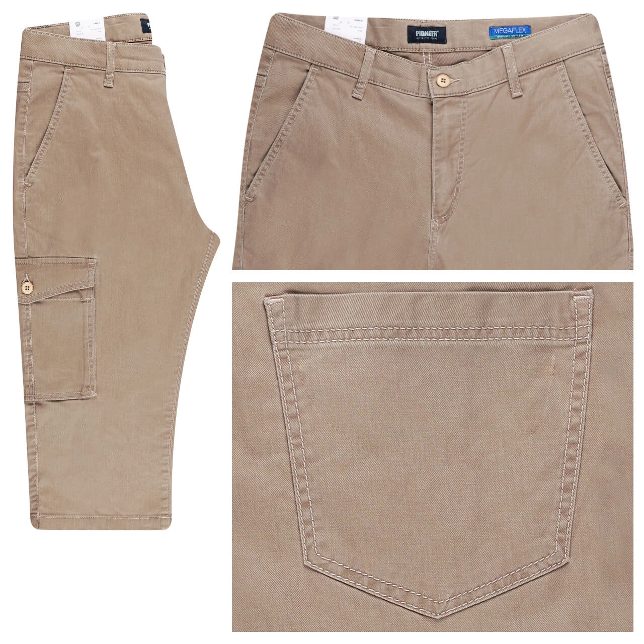 Stretch Herren 3/4 Cargo Jeans Carlo Megaflex in Beige