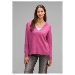 Street One Damen Pullover V-neck Sweater Light Green Melange