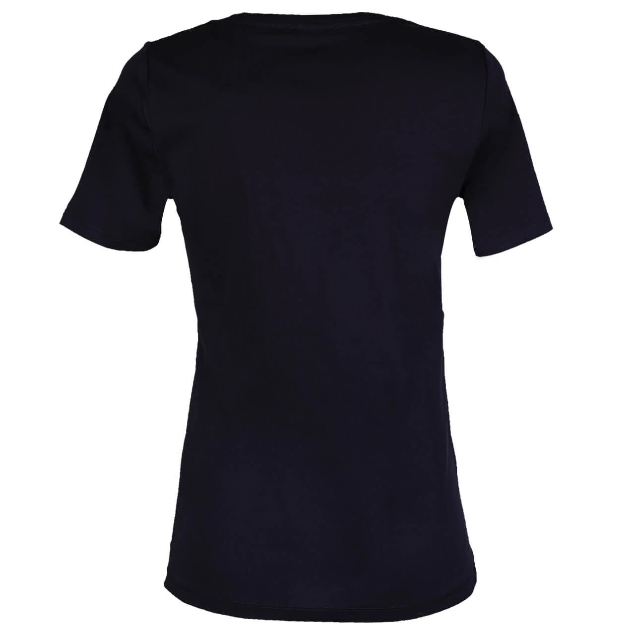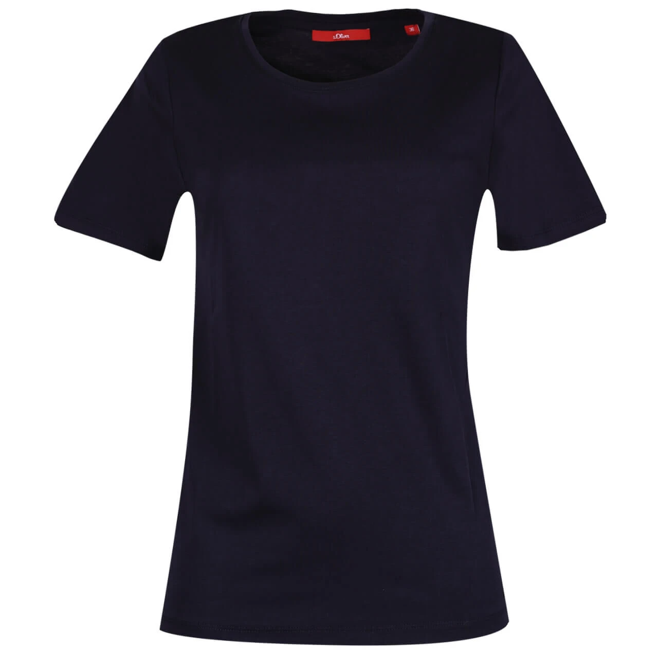 Erhalten Sie mit diesem Modell von s.Oliver ein zeitloses Basic-Shirt im flexibel kombinierbaren Dunkelblau. Das Baumwollmaterial hat einen besonders soften, leichten Griff und liegt angenehm auf der Haut. Der Rundhalsausschnitt verleiht dem Shirt einen femininen Look. Eine Markenapplikation in Silber am unteren Saum gibt dem T-Shirt einen hochwertigen Touch. Mit einer lässigen Damenjeans mit Destroyed Effekten und sportlichen Sneakern kombiniert entsteht im Handumdrehen ein cooles Freizeitoutfit!