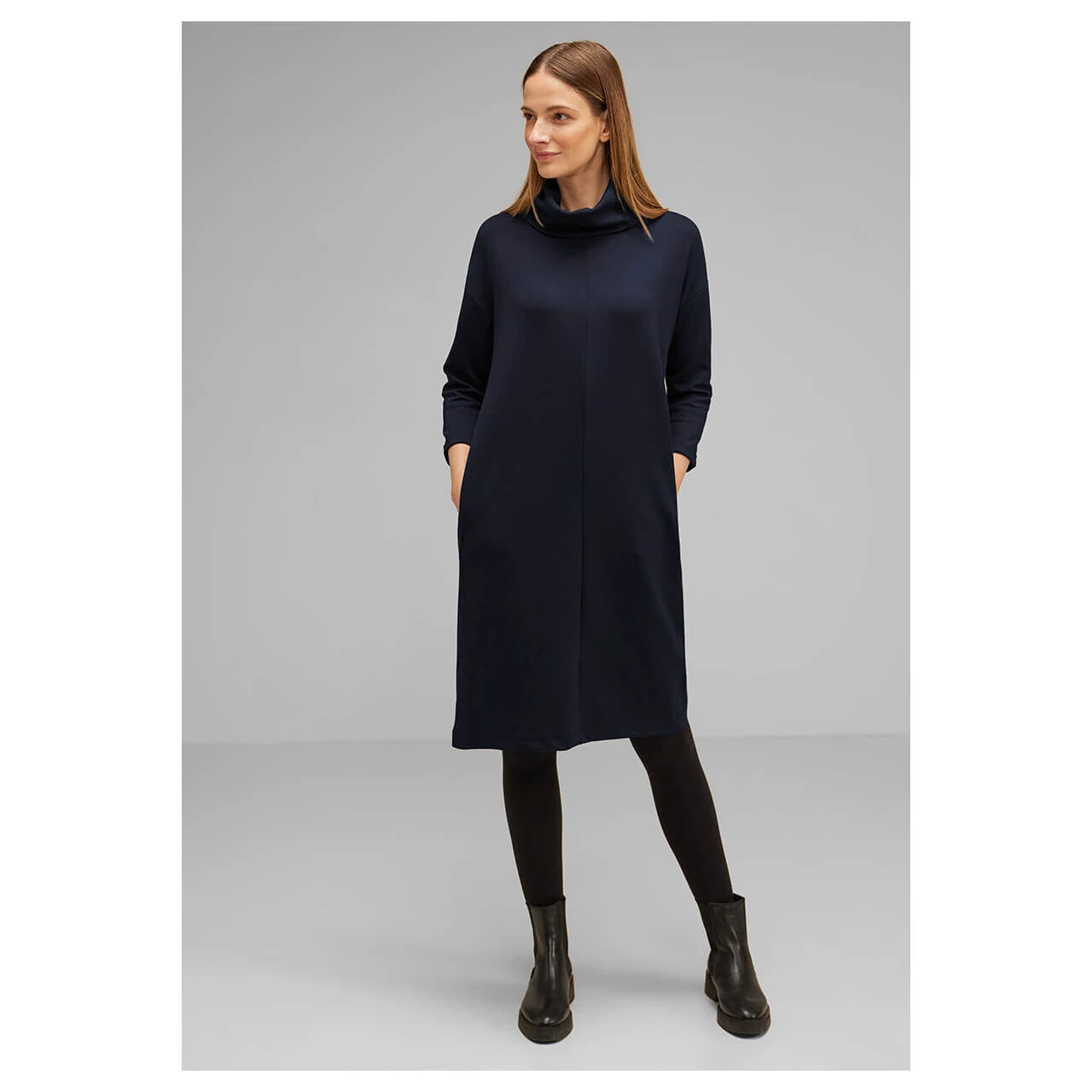 Komfort und Stil in seiner schönsten Form! Das Kleid von Street One ist mehr als nur ein Kleidungsstück. Mit seinem einladenden Volumen-Stehkragen und den praktischen seitlichen Eingriffstaschen verströmt es pure Gemütlichkeit und lädt dazu ein, sich rundum wohlzufühlen. Dieses unifarbene Damenkleid ist wie geschaffen für entspannte Stunden in der Freizeit und begleitet Sie stilvoll durch den Alltag.