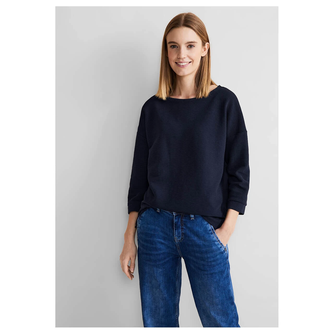 Damen 3/4 Arm Shirt Structure Mix in Dunkelblau