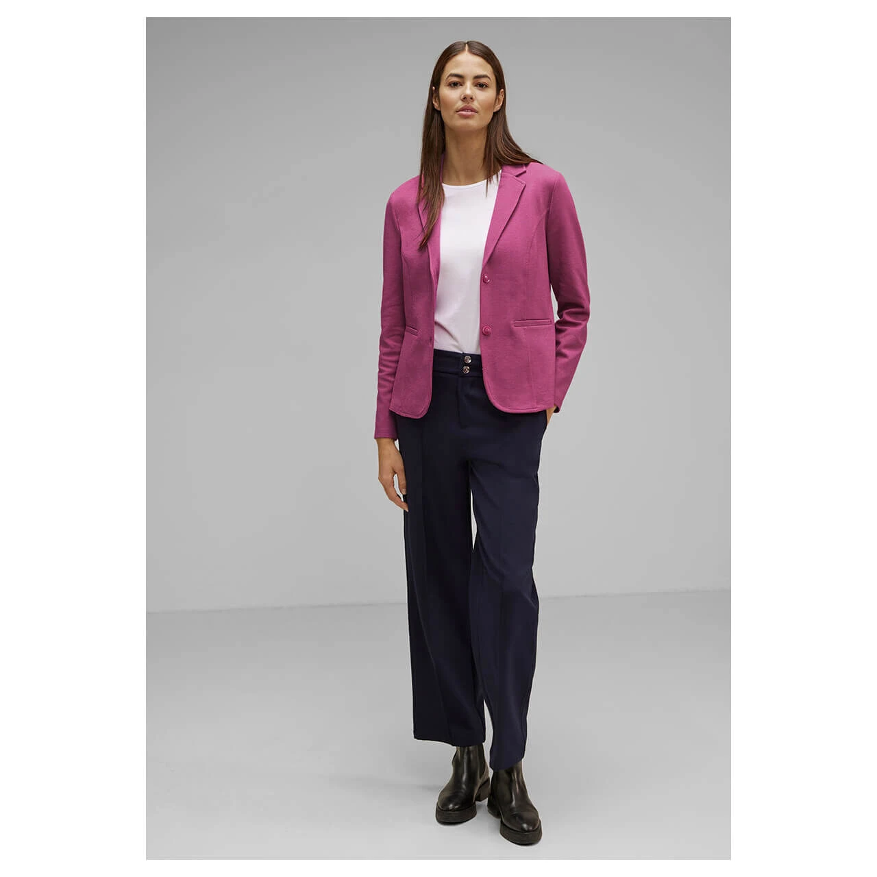 Besonders feminin wird es mit dem Damen Blazer von Street One in einem satten Beerenton. Die leichte Melierung verleiht Ihrem Outfit eine verträumte Note und ist somit ein absolutes Must-have in Ihrer Garderobe.