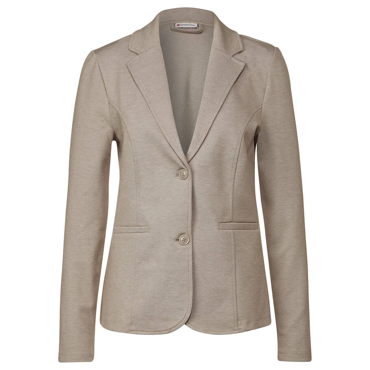 Besonders feminin wird es mit dem Damen Blazer von Street One in einem sanften Beige. Die leichte Melierung verleiht Ihrem Outfit eine verträumte Note und ist somit ein absolutes Must-have in Ihrer Garderobe.