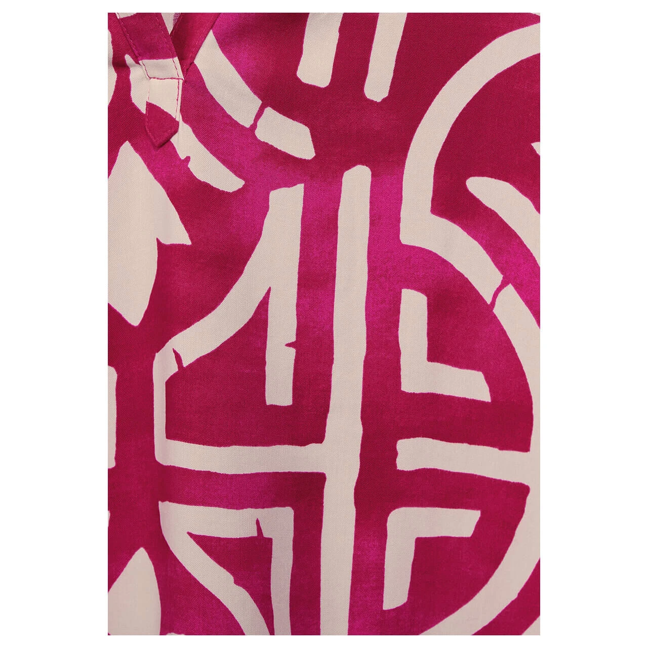 Damen Kurzarm Bluse Splitneck in Pink mit Print