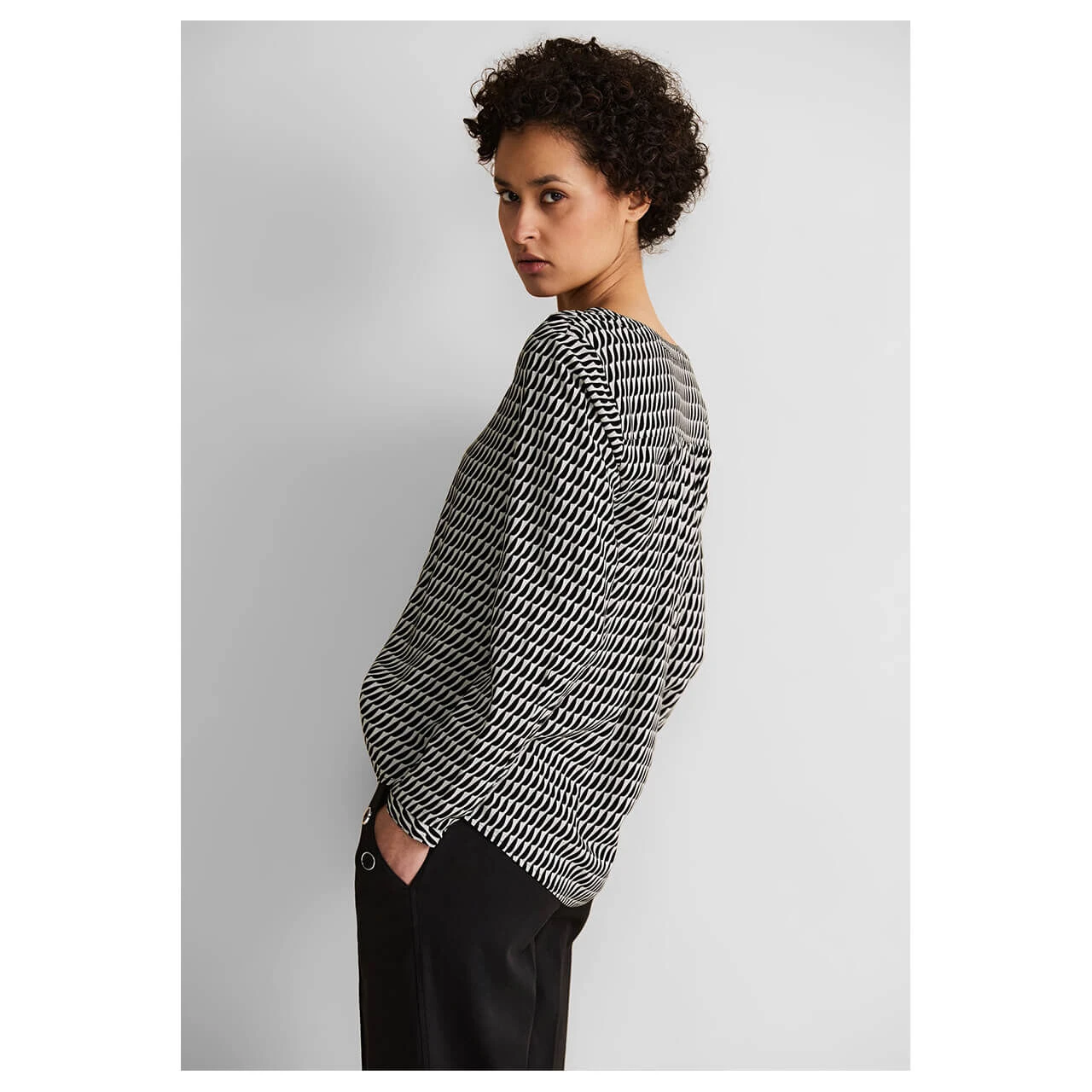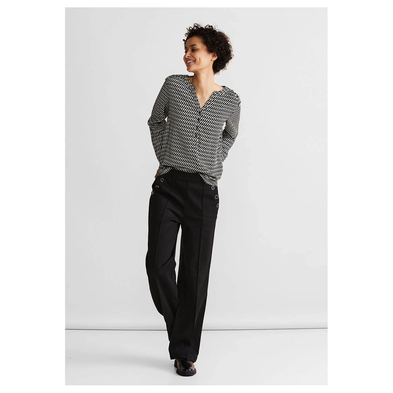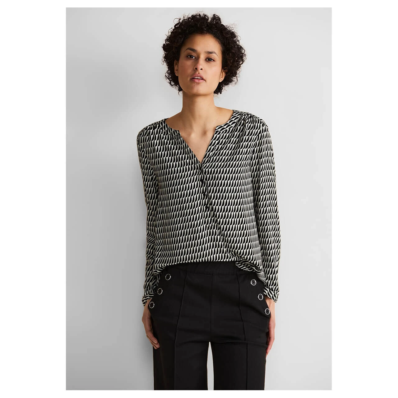 Stilvoll im Alltag unterwegs! Die Damen Bluse im Style Bamika von Street One mit geschlitztem Rundhalsausschnitt und halber Knopfleiste verleiht Ihnen stets ein souveränes Auftreten. Ob für Freizeit oder Büro, diese leichte und bequeme Damenbluse ist immer die perfekte Wahl, um modisch-schick gekleidet zu sein. Das Muster in zeitlosem Schwarz-Weiß lädt außerdem zum Kombinieren ein.