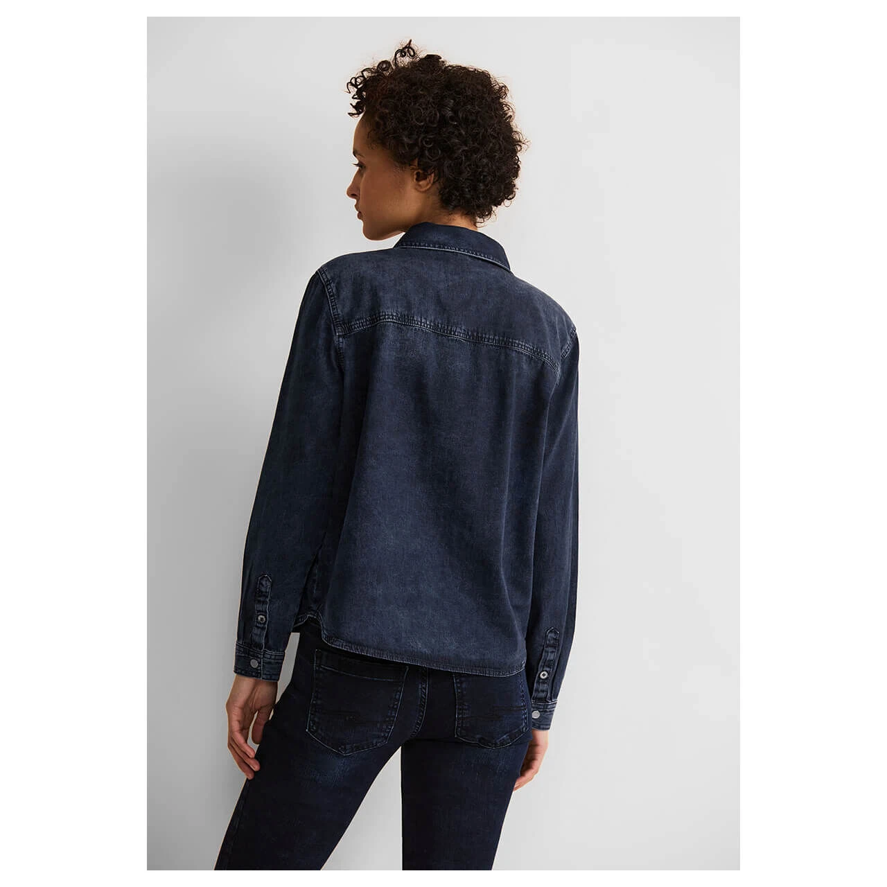 Damen Langarm Jeansbluse in Dunkelblau angewaschen