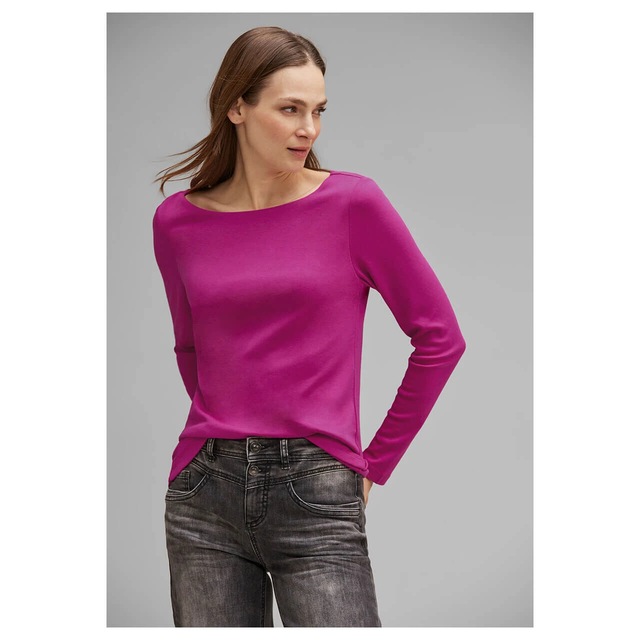Ein Allround-Talent für abwechslungsreiche Looks! Das Damen Langarm Shirt im Style Lanea mit weitem U-Boot Ausschnitt können Sie zu vielen Anlässen tragen und flexibel kombinieren. Ob mit Rock oder Jeans, mit Strickjacke oder Blazer – mit diesem Damen Oberteil wird Ihr Outfit garantiert perfekt. Ganz nebenbei sorgt der Baumwoll-Modal-Mix für optimalen Tragekomfort.