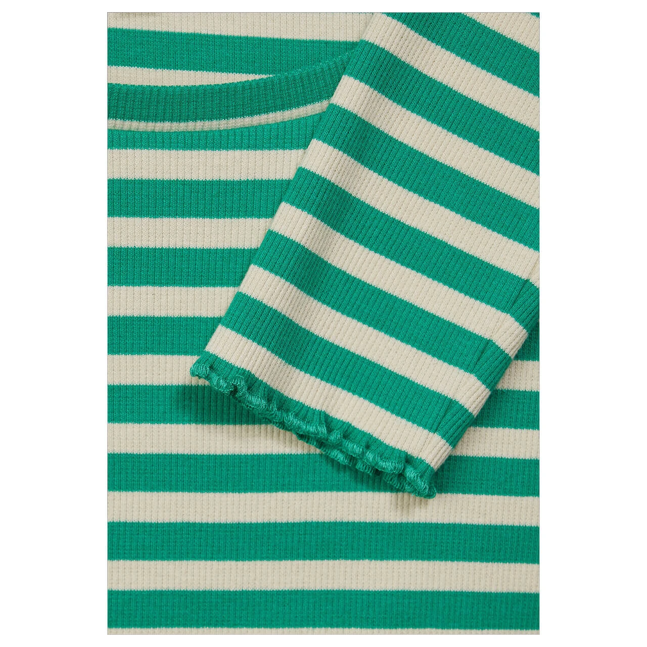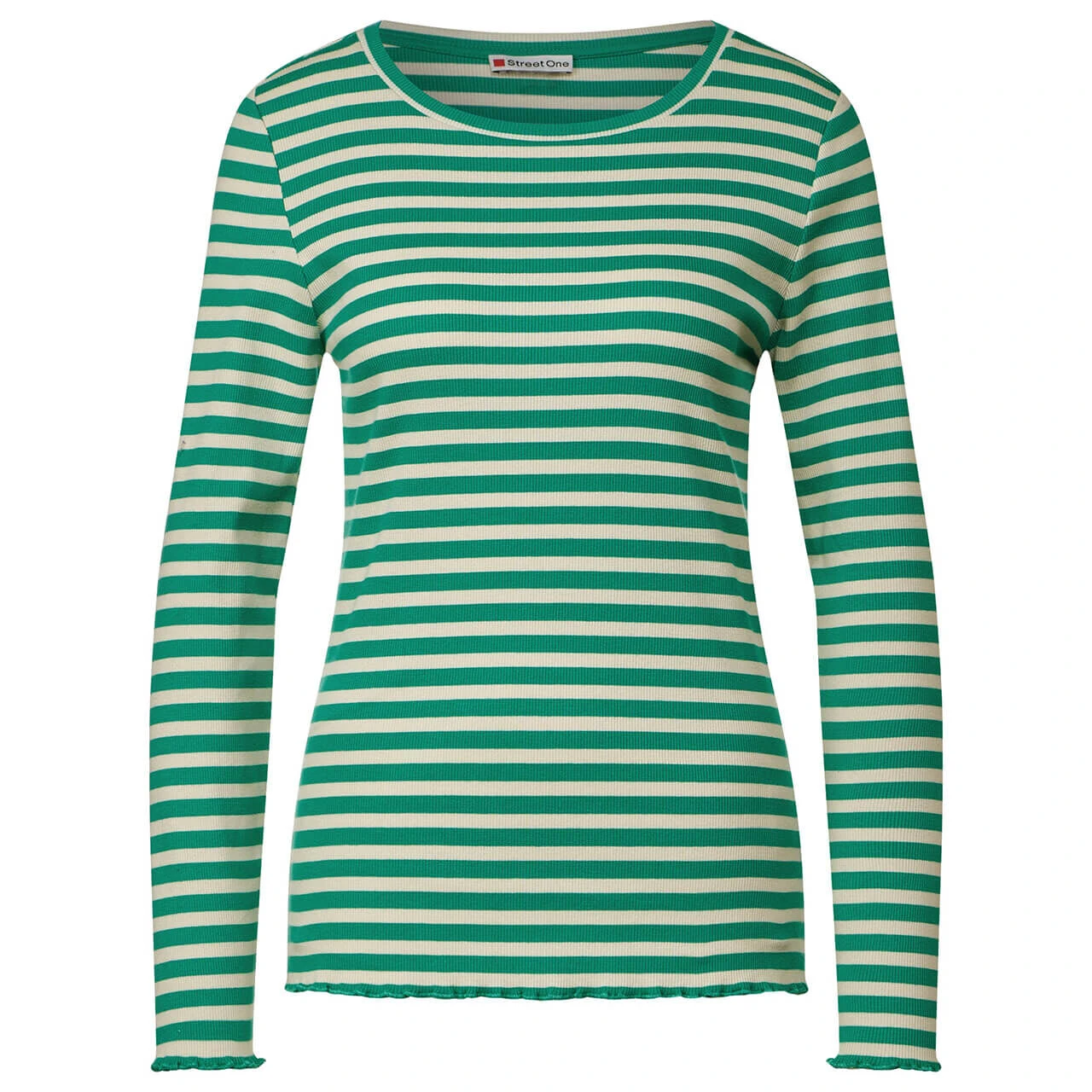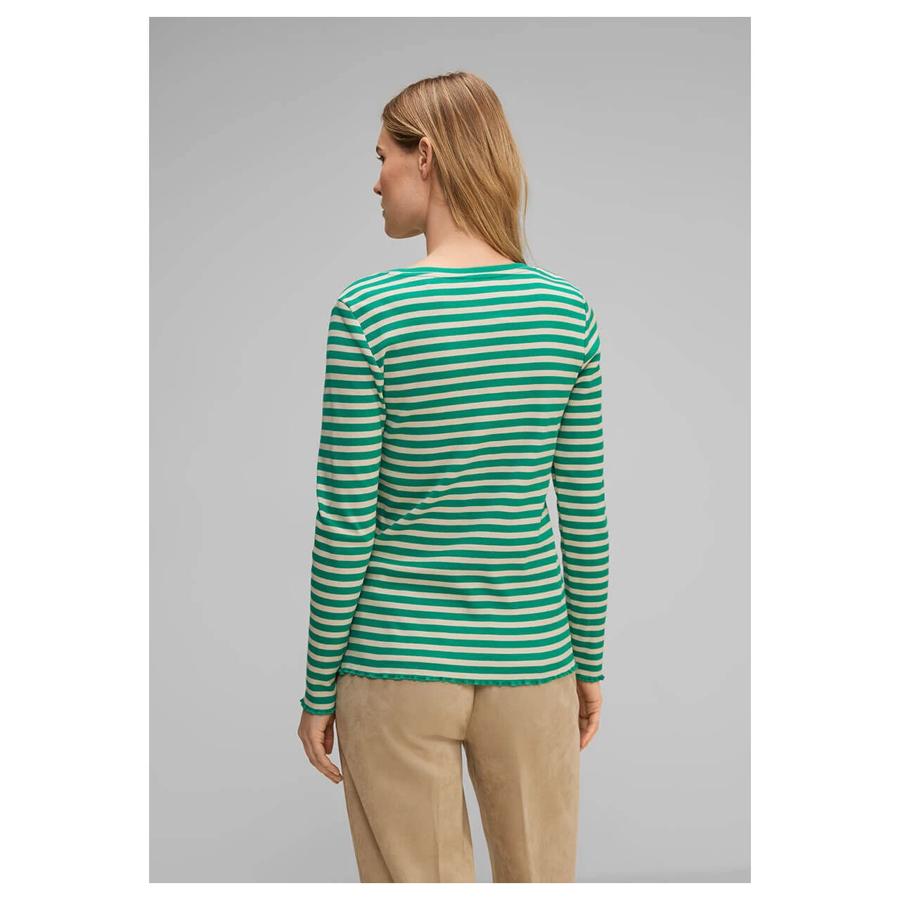 Gerippter Liebling! Das Damen Langarm Shirt von Street One begeistert mit seinem zeitlosen Streifendessin und einem bequemen Rundhalsausschnitt. Der leicht gewellte Saum verleiht diesem Oberteil eine besondere Note und macht es zu einem echten Hingucker.