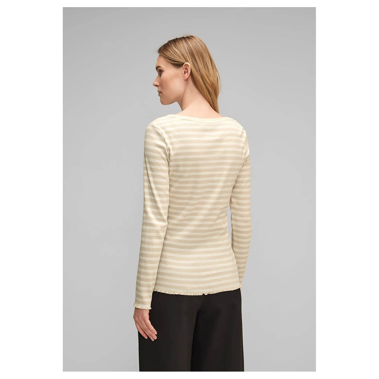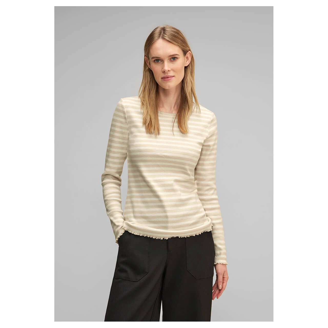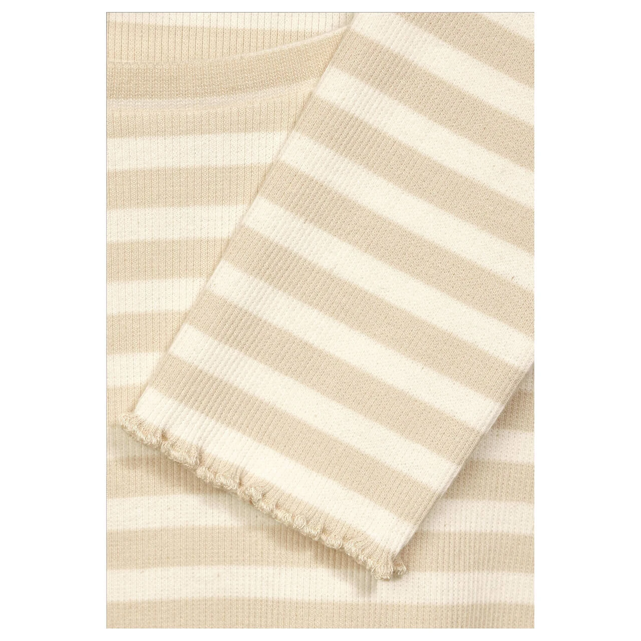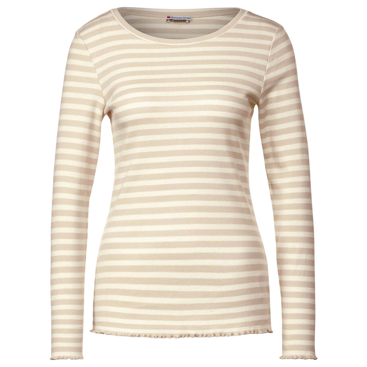Damen Langarm Shirt Rib in Beige gestreift