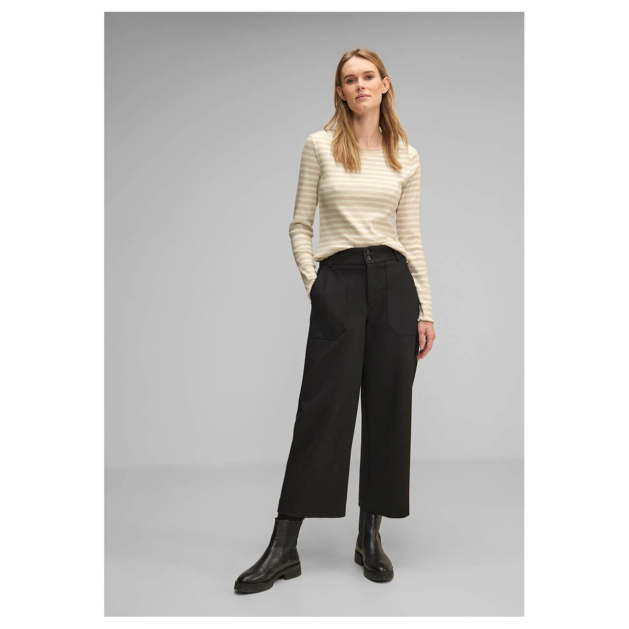 Gerippter Liebling! Das Damen Langarm Shirt von Street One begeistert mit seinem zeitlosen Streifendessin und einem bequemen Rundhalsausschnitt. Der leicht gewellte Saum verleiht diesem Oberteil eine besondere Note und macht es zu einem echten Hingucker.