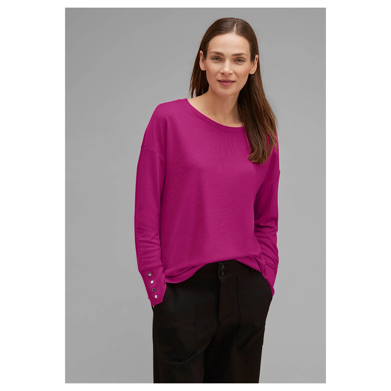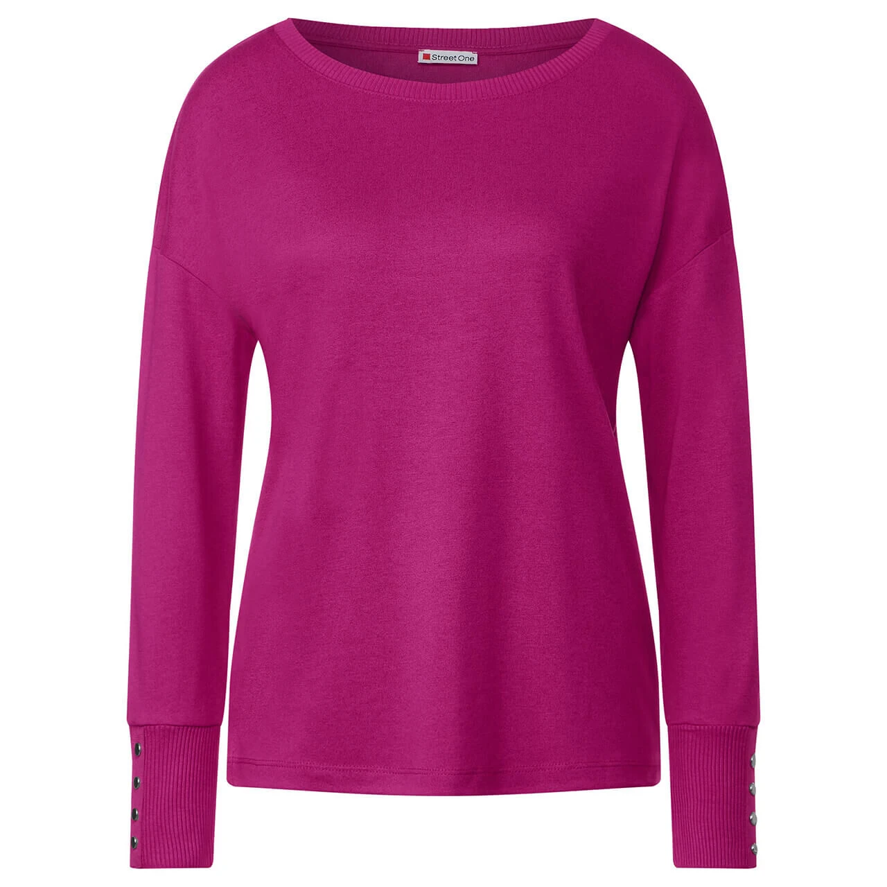 Stilvoll und vielseitig! Der Damen Pullover von Street One zeigt sich mit dekorativen Knöpfen am Rippbündchen und einem weichen Viskosemix. Er lässt sich in Unifarbe vielseitig kombinieren und bietet angenehmen Tragekomfort.