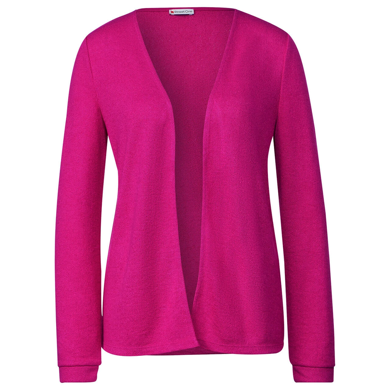 Die Damen Strickjacke Nette von Street One ist ein vielseitiger Allrounder. Mit ihrem luftig-leichten Strick und ihrer angenehmen Jersey-Qualität eignet sie sich dabei auch ideal für wärmere Tage. Zudem sorgen die verschlusslose, offene Form und die Rippbündchen am Langarm für einen bequemen Sitz und einen zeitlosen Look. Dieser Cardigan im Feinstrick passt damit ausgezeichnet zu verschiedenen Outfits und sollte in keiner Garderobe fehlen!