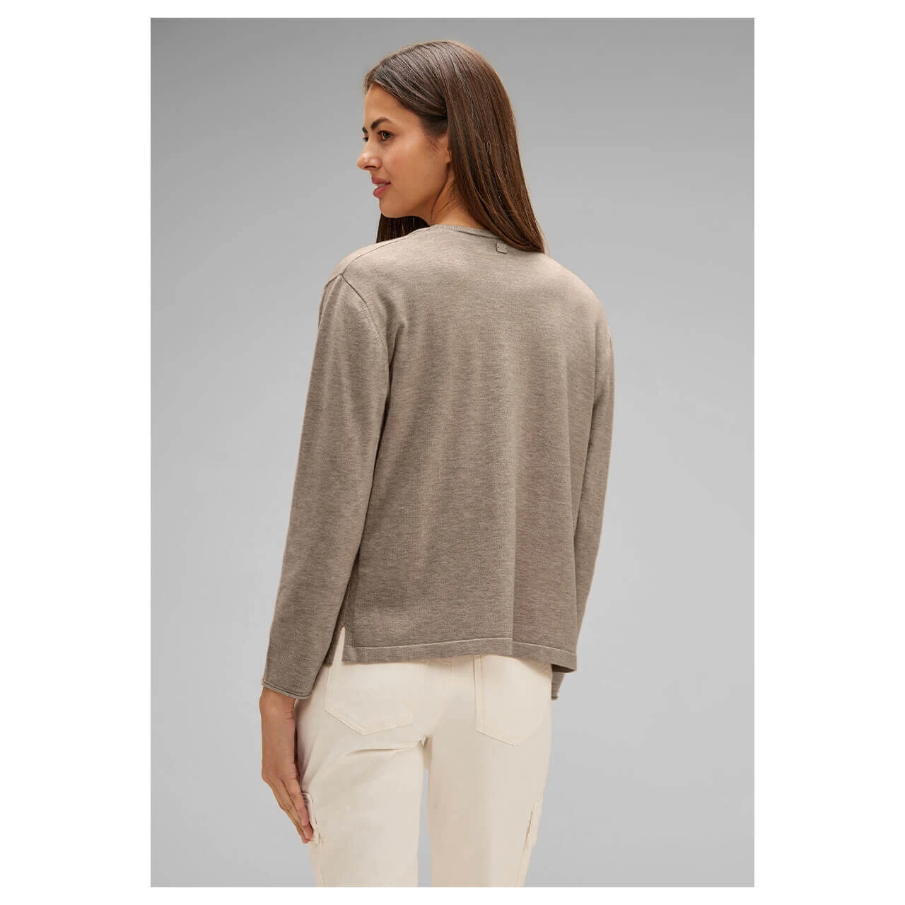 Unkompliziert und vielseitig einsetzbar! Die Street One Damenjacke ist aus einem weichen Materialmix gefertigt und überzeugt durch ihre einfache Eleganz. Schnell übergezogen, vervollständigt der unifarbene Kurz-Cardigan mühelos Ihr Outfit. Ein praktisches Kleidungsstück, das sowohl im Büro als auch in der Freizeit gut aussieht.