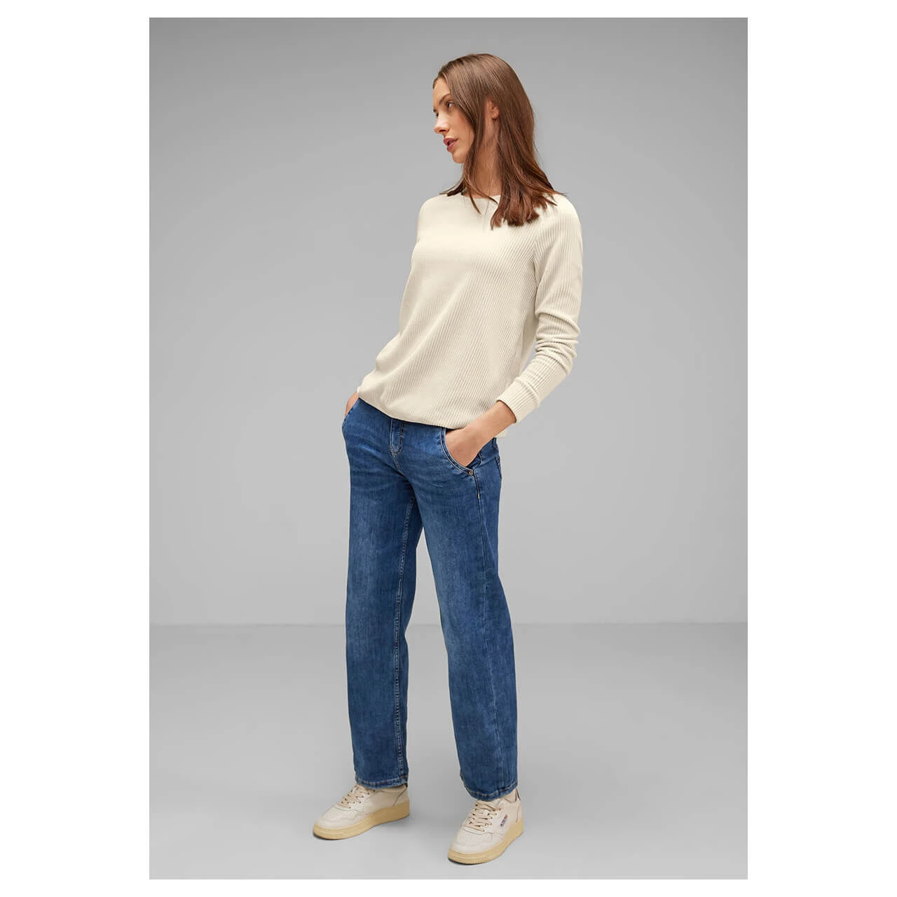 Ein bisschen Cord tut doch jeder Dame gut! Dieses trendige Damen Sweatshirt von Street One ist ein modisches Meisterwerk: Das grobe Cordmaterial verleiht Ihrem Look eine kreative Note, während die klassischen Details wie Streifenmuster, Rundhalsausschnitt und Ärmelbündchen das Damen Oberteil zu einem zeitlosen Begleiter machen.