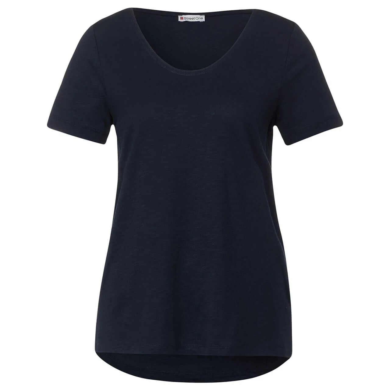 Wir lieben das Damen T-Shirt Gerda von Street One: Dieses Oberteil zählt zu den Basics und gehört in jeden Kleiderschrank! Tragen Sie das unifarbene Modell mit der zarten Melierung als zeitlosen Klassiker.