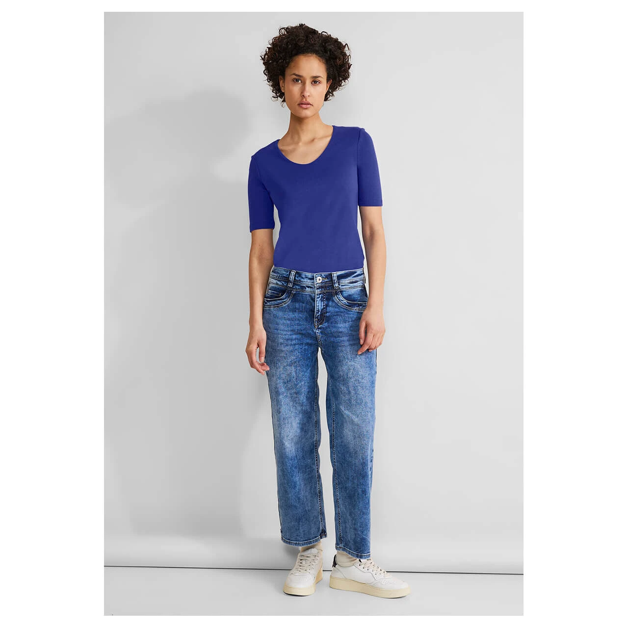 Sie lieben Basics? Dann ist das Damen T-Shirt Palmira von Street One ein absolutes Must-have in Ihrem Kleiderschrank! Der weiche Materialmix und die etwas längeren Ärmel sorgen für den hohen Tragekomfort.