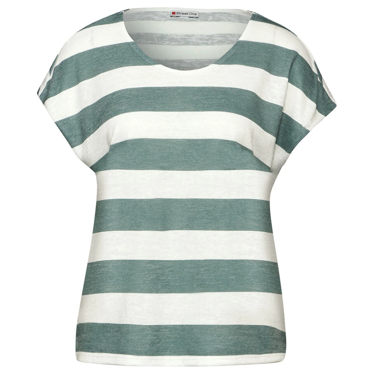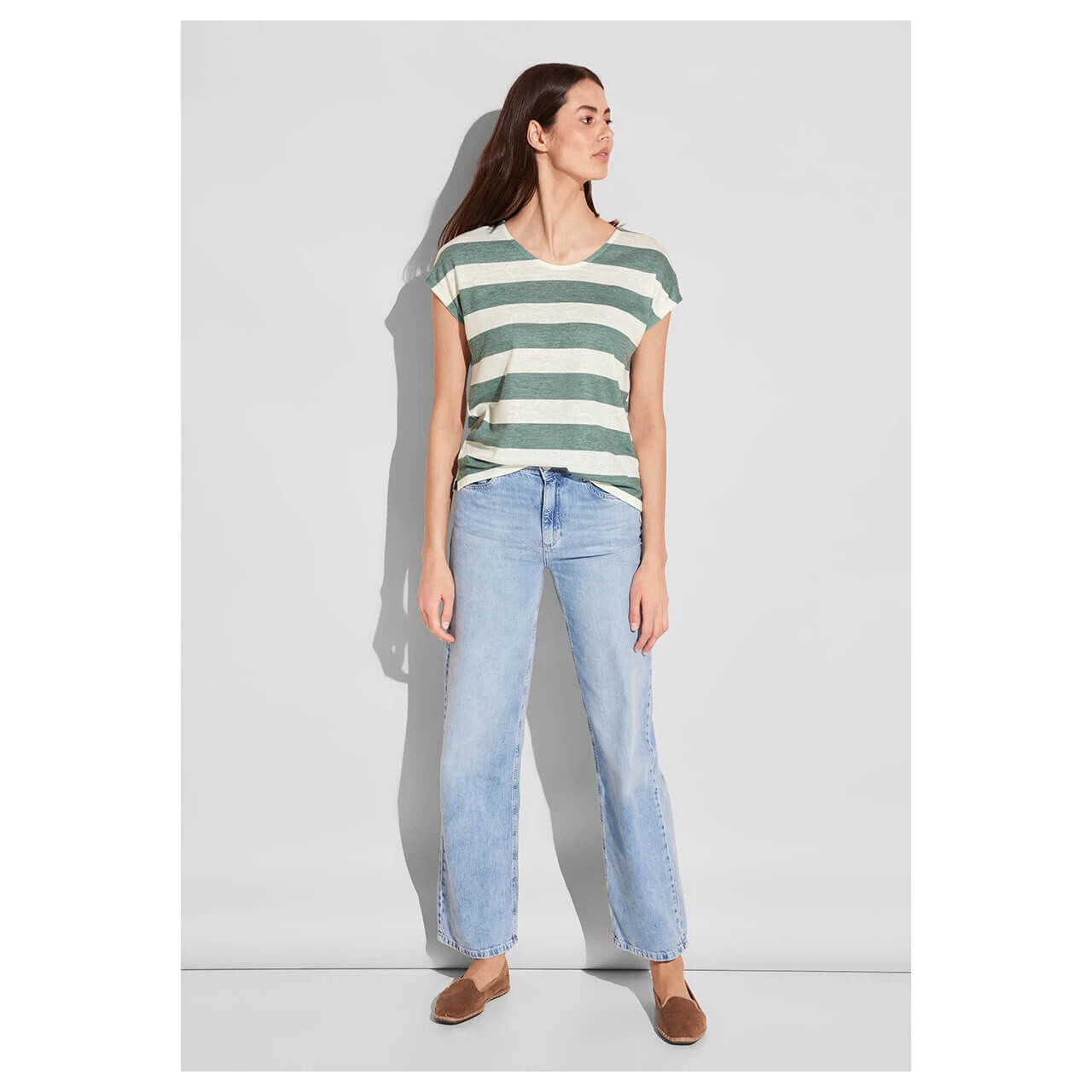 Das gestreifte Damen T-Shirt von Street One vereint lässigen Stil und angenehmen Tragekomfort. Die Leinen-Melange-Optik verleiht dem Oberteil eine moderne Note.