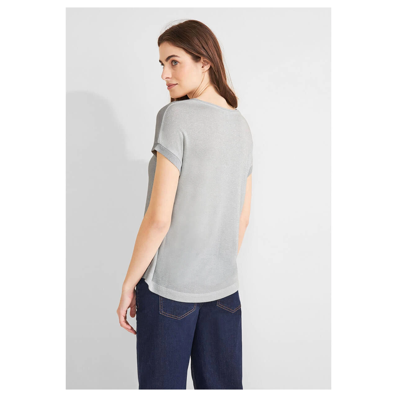 Dieses schimmernde Damen T-Shirt von Street One ist ein stilvolles Oberteil, das Ihrem Look einen Hauch von Eleganz verleiht. Der Viskosemix sorgt nicht nur für ein angenehmes Tragegefühl, sondern auch für eine edle Optik. Mit Rippstrick an Arm und Ausschnitt sowie der verlängerten und abgerundeten Rückseite wird das Design perfekt in Szene gesetzt.