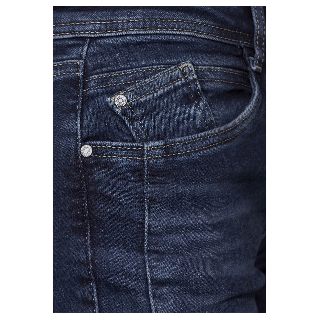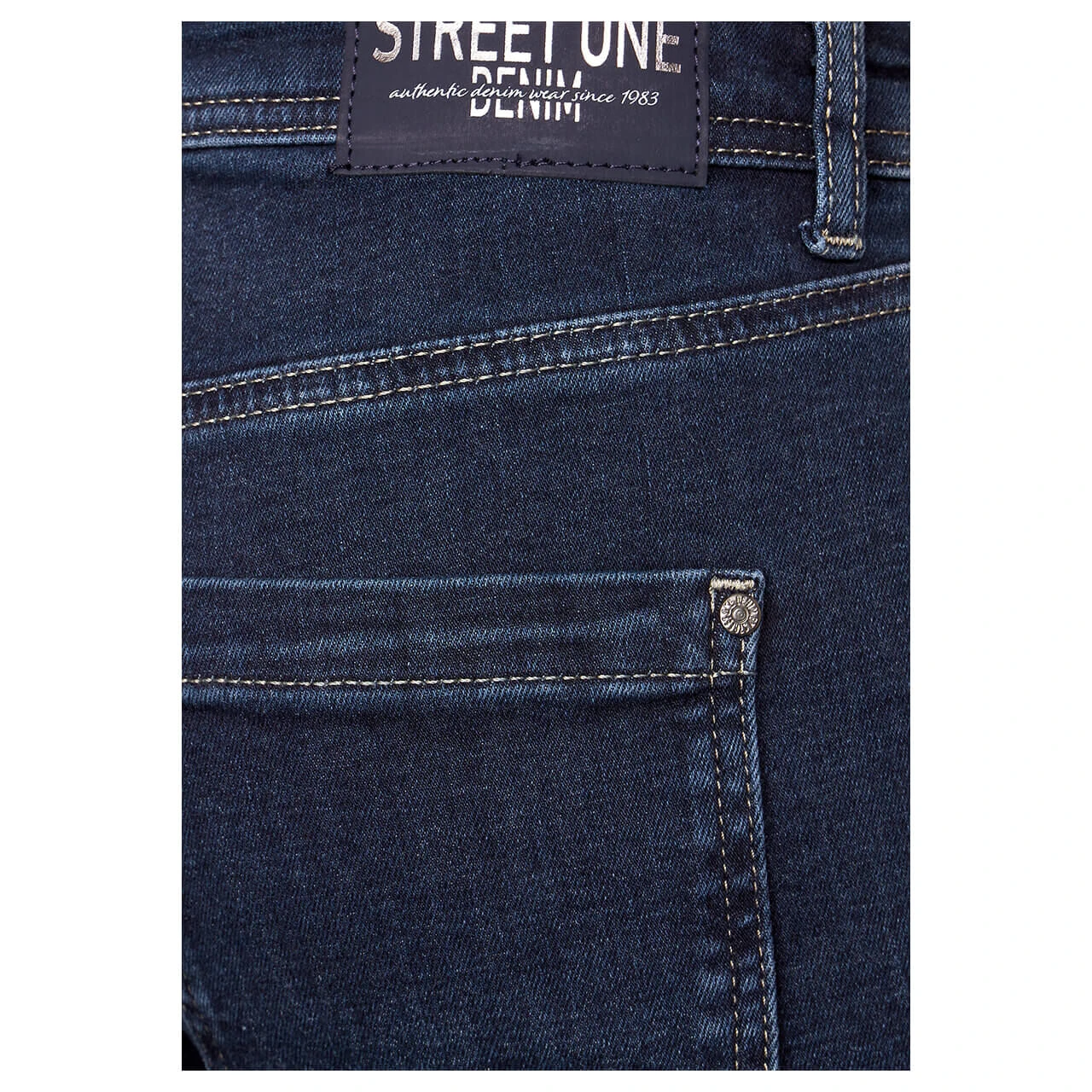 Die Street One Jeans Jane ist die ideale Begleiterin für kühlere Tage, denn die leicht angeraute Innenseite sorgt zuverlässig für ein wärmendes Tragegefühl. Aber auch in Sachen Fashion kann diese klassische blaue Damenjeans punkten: Optische Highlights sind zum Beipiel die schräg gesetzte Münztasche oder die Beinaußenseiten mit breiter Doppelnaht.