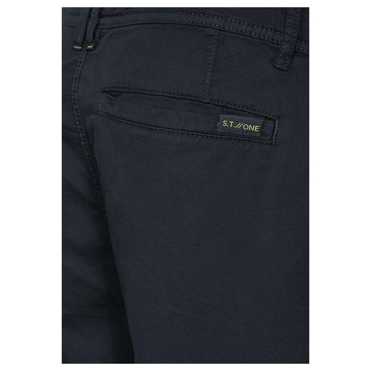 Die Chino Bermuda von Street One Men Jeans hat nicht den typisch weichen Griff, den Sie von anderen Baumwollhosen kennen. Stattdessen fühlen Sie bei der kurzen Hose deutlich die eingearbeitete Struktur – erkennen können Sie das feine Wabenmuster aber nur bei sehr genauer Betrachtung.