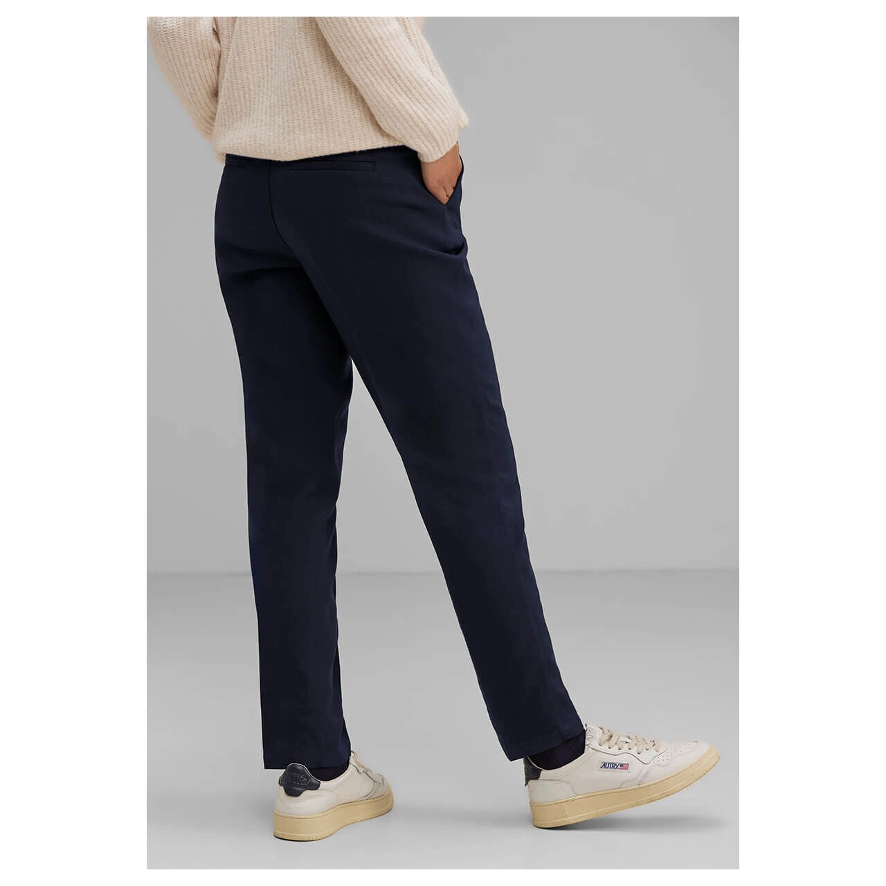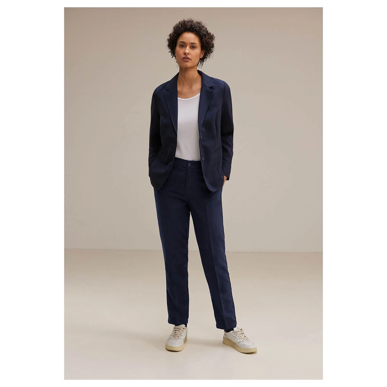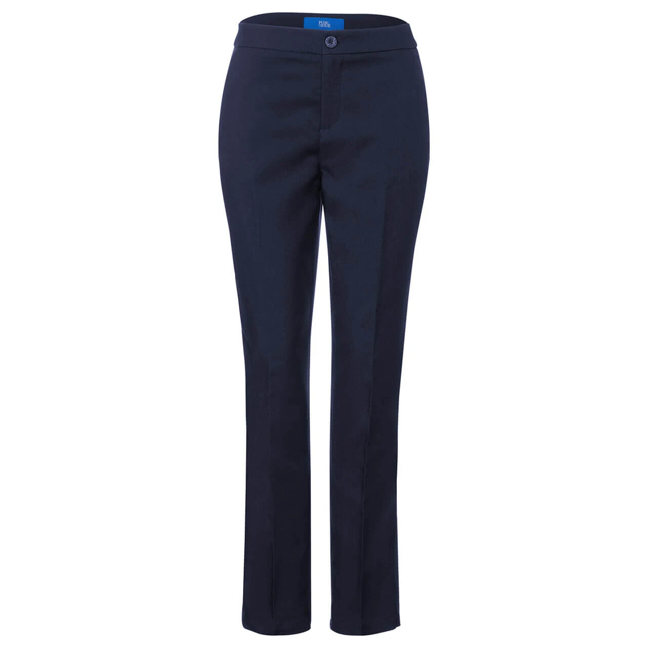 Kompetenter Auftritt bei bestem Tragegefühl! Die Solid Twill von Street One Jeans ist die perfekte Damenhose für souveräne Looks im beruflichen Alltag. Der moderne Schnitt – schlankes Bein und hoher Bund – sitzt nicht nur super bequem, sondern zaubert auch eine vorteilhafte Silhouette. Die Bundfalte sowie die angedeuteten Gesäßtaschen verstärken das emanzipierte Design.