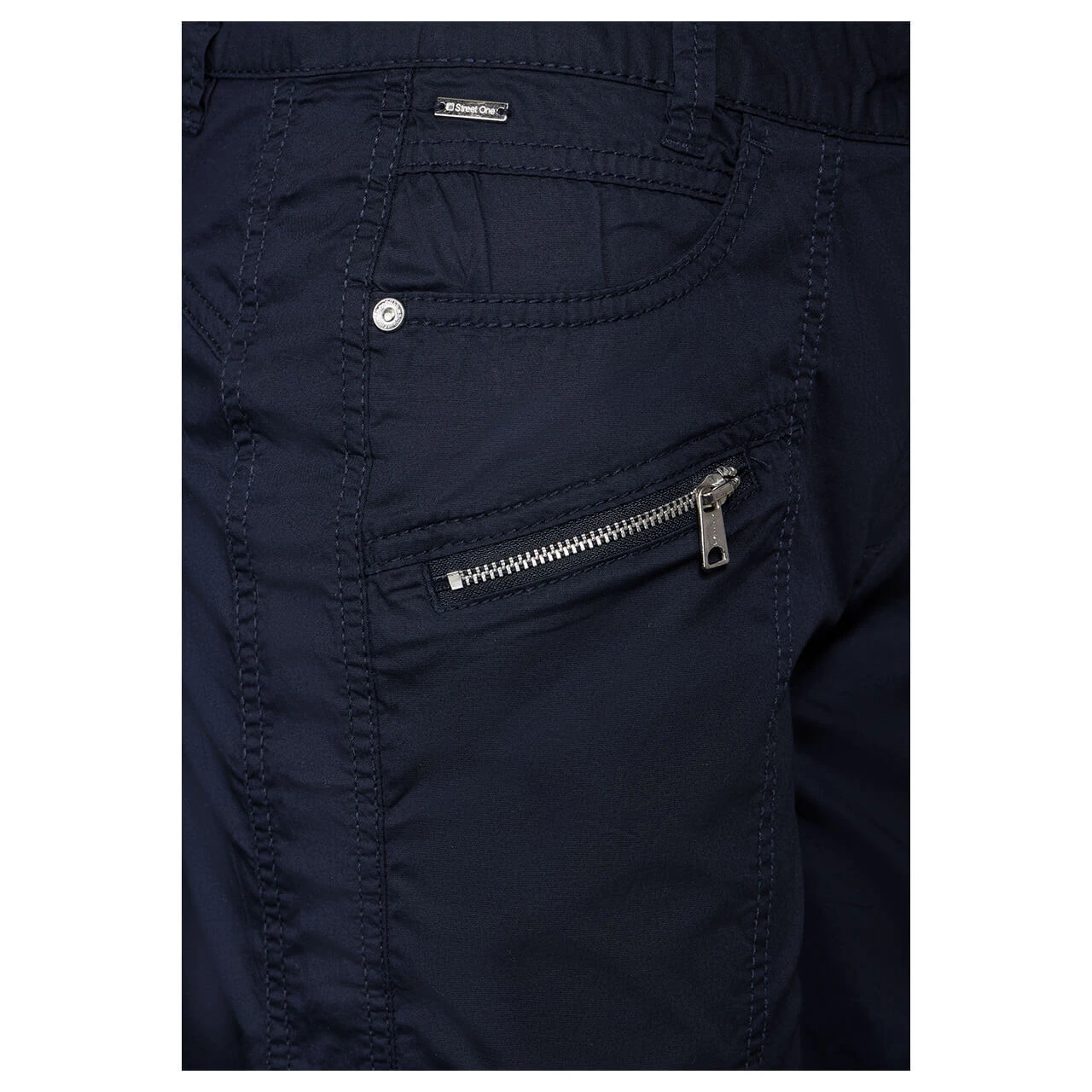 Trotz der zurückhaltenden Farbe ist die Street One Jeans Yulius ein Hingucker! Liebevoll platzierte Details zieren die verkürzte Damenhose und ergänzen den legeren Look mit einer Knitteroptik.